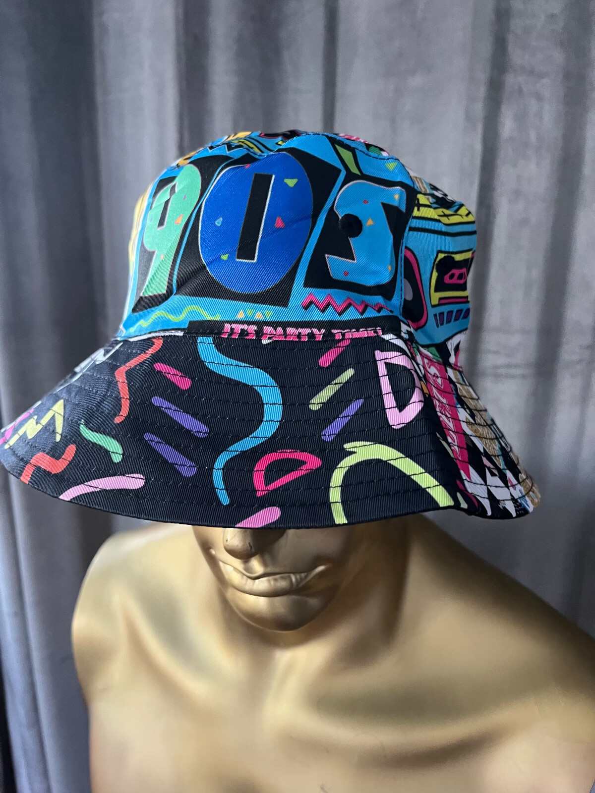 Department: Men Size: Adjustable Vintage: No Brand: love the 90's Material: Cotton Theme: 90s Style: Bucket Hat Color: Black Occasion: Casual, Party/Cocktail