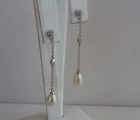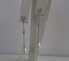 925 STERLING SILVER FRESH WATER PEARL DANGLING EARRINGS WITH .50 CARATS OF MAN MADE DIAMONDS AND 7MM OVAL SHAPE WHITE PEARLS...TOTAL WEIGHT 2.9 GRAMS.... DIMENSION 51MM BY 7MM.... VERY UNIQUE DESIGN THAT HAS IMMACULATE FINISH AND SUBURB WORKMANSHIP..... RETAILS OVER $ 195.00....BGE00507.. AMAZING SAVINGS GREAT VALENTINE GIFT!!!!!! LOOKS 1000 TIMES BETTER IN REALITY THAN IN THE PICTURES!!!!!
