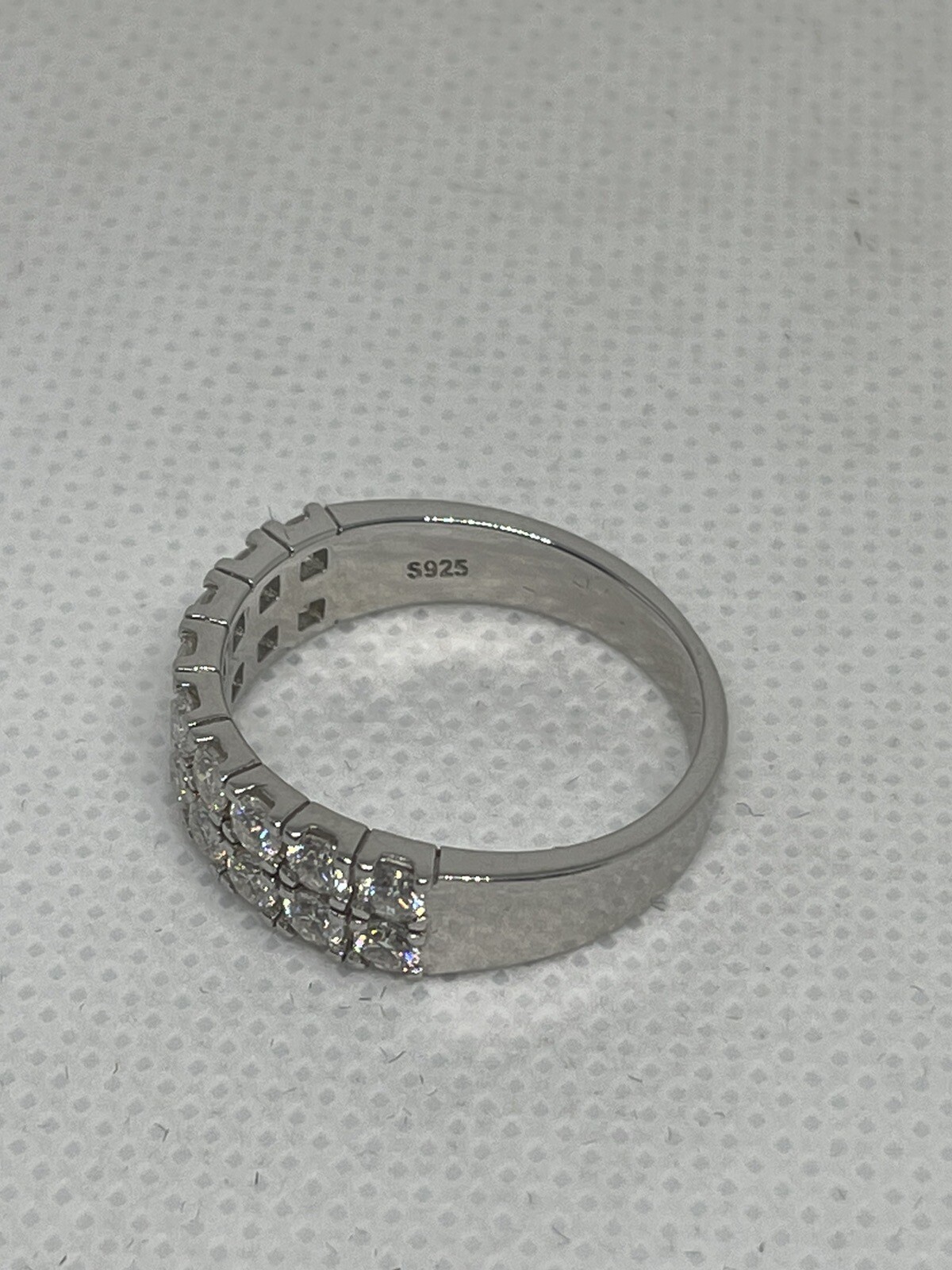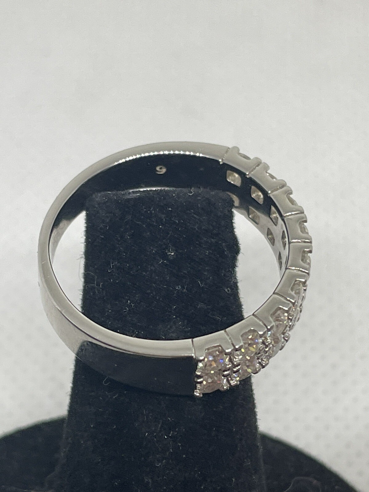 This stunning 925 silver ring boasts a brilliant moissanite stone in a round shape, set in a prong-style setting. The double-row half eternity band is perfect for a wedding or engagement ring and comes in size 9 The silver ring is handmade and signed, featuring a GRA certification for authenticity. This vintage-style ring is also customizable, with the option for personalization instructions upon purchase. Ideal for those in search of a unique piece of men's jewelry, this ring is sure to make a statement.