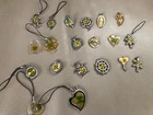925 SS Pendants wholesale lot made with real dried pressed flowers Taxco Mexico. Made from 925 Sterling Silver marked on pendant. If you want only some of the pendants contact me i can sell some of them separately. Price per pendant will be higher. You will receive all the pendants pictured. Some more lots of 4 leaf clover, sea stars, insects, scorpions, crabs are also available. YOU WILL RECEIVE ONLY ALL THE FLOWER PENDANTS IN THE FIRST IMAGE. fOR THE OTHER LOTS PLEASE CONTACT ME.