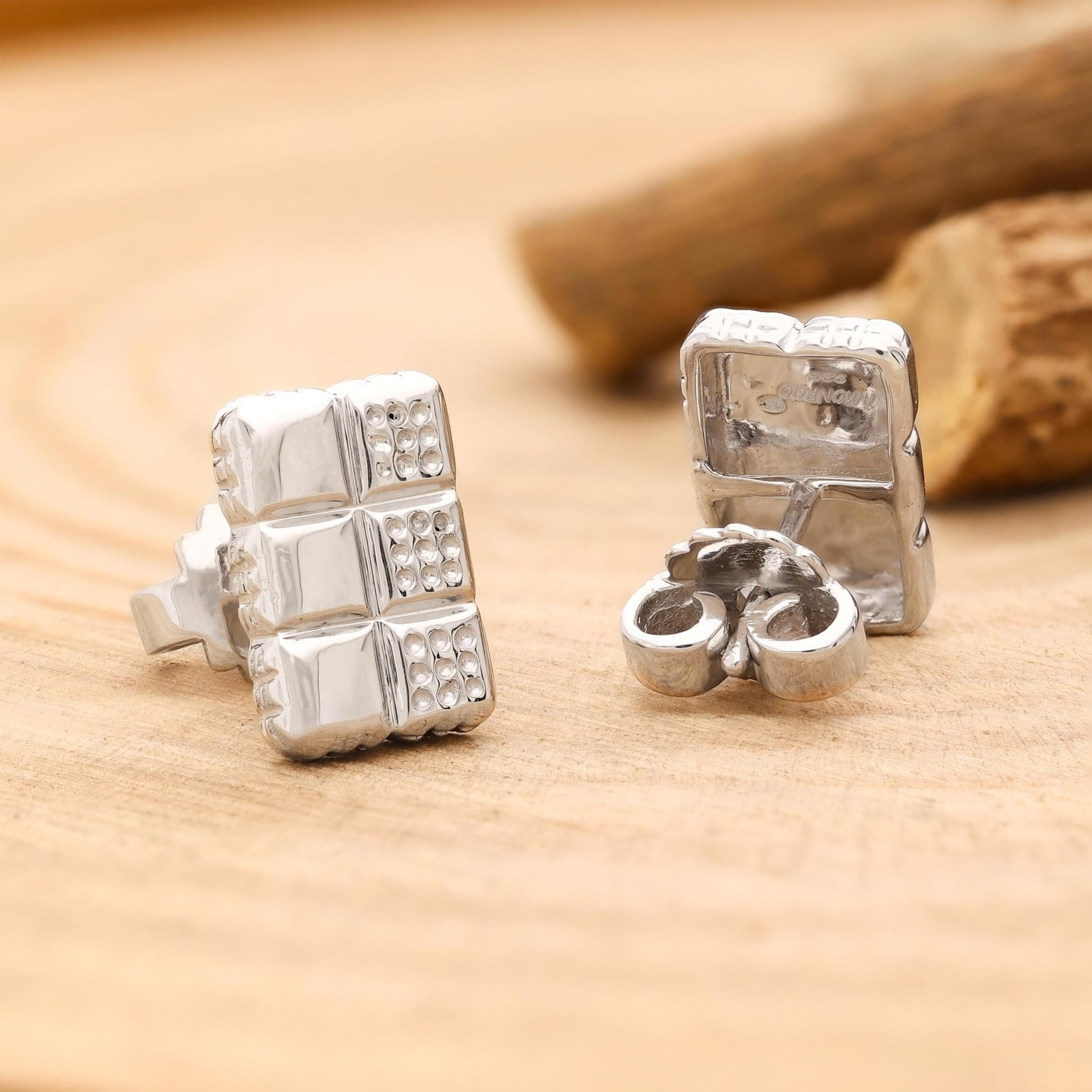 925 Silver Geometric Block Design Bold Textured Stud Earrings Gift For Women