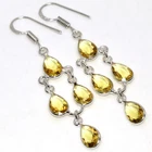 925 Silver Plated Citrine Faceted Ethnic Long Earrings Jewelry Size 2.3" JW
