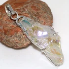 925 Silver Plated Crystal Titanium Aura Quartz Pendant Size 2.3" JW