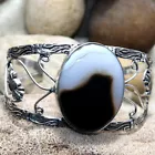 925 Silver Plated Huge Banded Black Onyx 36x27mm Bangle Size 6.5" JW