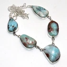 Color: AS SEEN IN PICTURE Occasion: Wedding Gifts, Valentine's Gift, Mother's Day, Christmas Metal Purity: Unknown Personalize: No Setting Style: collet setting Country of Origin: India Main Stone: Larimar Number of Gemstones: AS Seen in Picture Main Stone Shape: AS Seen in Picture Antique: NO Pendant Shape: AS Seen in Picture Type: Necklace Necklace Size: 16 Metal: Copper Alloy Wholesale: As your Request Style: New Necklace Length: 16 Handmade: YES UPC: does not apply Length: 16 Cut Grade: Excellent Size: 16 Features: Silver Plated Customized: No gtin13: does not apply Country/Region of Manufacture: India Theme: Ethnic Main Stone Creation: Natural Era: Undated MPN: M66981 Main Stone Treatment: Not Enhanced Brand: HANDMADE Material: Stone Sizable: Yes Band Width: Band Width Base Metal: Copper Main Stone Color: As Seen in Picture