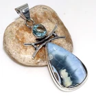 925 Silver Plated Owhyee Blue Opal Blue Topaz Long Pendant Size 2.3" JW