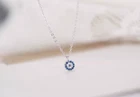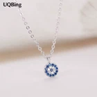 925 Stamp Silver Color Eyes of Evil Necklaces Pendants Women Blue Cubic Zircon W