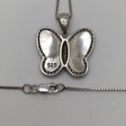 925 Sterling Silver 1” White Fire Opal Butterfly Pendant Necklace 18" #1810 Unknown origin of stones. Could be lab created. Hand polished. Previously owned. Measuring Tools & display not included. Combined Shipping! 1st item $4.59, each additional item is $1. Max shipping cost $10. Combine shipping for up to 7 days! We value YOU! Items are returnable and fully refundable! SilverSchark began as a hobby that grew into a business. We take old retired sterling silver jewelry and revitalize it to wearable condition. Utilizing an ultrasonic machine with sterling silver solution most items are restored to their original beauty. Occasionally scratches are buffed out and some minor repairs are made to bring these tired pieces back to life. Diamonds are always tested. If a piece is not stamped or is suspected of not being sterling silver, the item is acid tested for confirmation. Tests will always be listed in the description. We understand that patina is desired on vintage or antique items so some of the listings will not be cleaned and polished. The description of each listing will tell its tale of restoration. Combined shipping is always welcome! Just ask for an invoice if your cart doesn't look correct. Max shipping cost is $10 per shipment regardless of number of items!