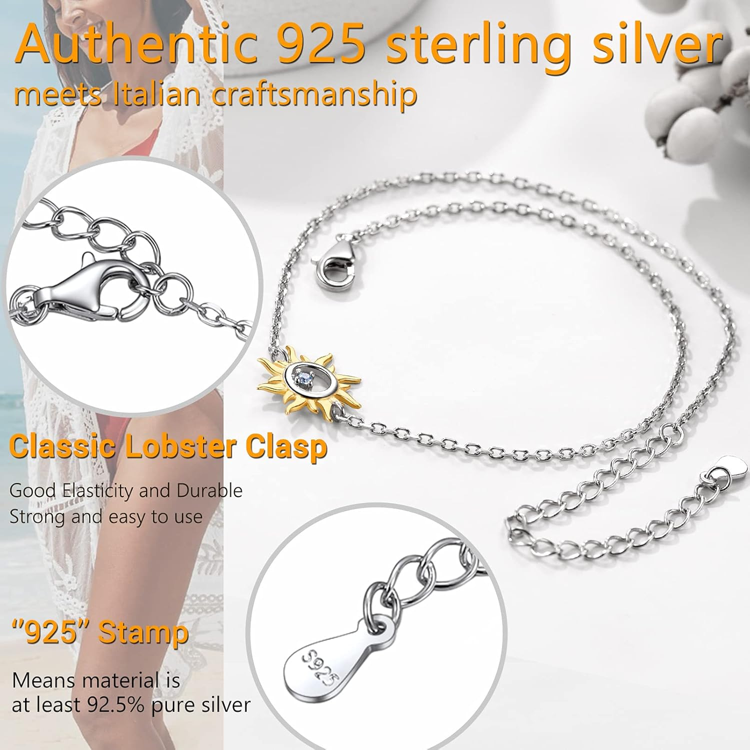 Menu Other Items Feedbacks About Us Contact Us Add To Favorites 925 Sterling Silver Ankle Bracelets for Women, Stylish Chain Anklets, Summer Beach Jewelry, 8.6-10.6 Inch Adjustable, Come with Box Product Description The video showcases the product in use. The video guides you through product setup. The video compares multiple products. The video shows the product being unpacked. PROSILVER Silver Chain Anklet For Women Merchant Video Cuban Link Anklet PROSILVER Beach Anklet S925 Sterling Silver Material S925 Sterling Silver WaterProof Adjustable Hypoallergenic Non Tarnish S925 Sterling Silver Material S925 Sterling Silver WaterProof Adjustable Hypoallergenic Non Tarnish S925 Sterling Silver Material S925 Sterling Silver WaterProof Adjustable Hypoallergenic Non Tarnish S925 Sterling Silver Material S925 Sterling Silver WaterProof Adjustable Hypoallergenic Non Tarnish Initial with Heart Anklet Initial on Heart Anklet Layered Heart Anklet Initial on Heart Anklet Item Specification Style 01 Sun Anklet Metal stamp 925 Chain Link Gem Type Cubic Zirconia Material Metal Metal Silver Model number PYA15111B-NA Length 8.5 inches Item Length 8.5 inches Department womens Clasp Lobster Claw SHIPPING FREE FAST SHIPPING FREE SHIPPING We are always working hard to ensure your package arrives as soon as possible. Please understand that some factors like weather, high postal traffic, and the performance of shipping companies are outside of our control. We offer free shipping to the lower 48 states. We do not accept P.O. Boxes. Please provide a physical address. If you have a problem or question regarding your transaction please contact us immediately. We will work with you to resolve any problem you may have. Thank you