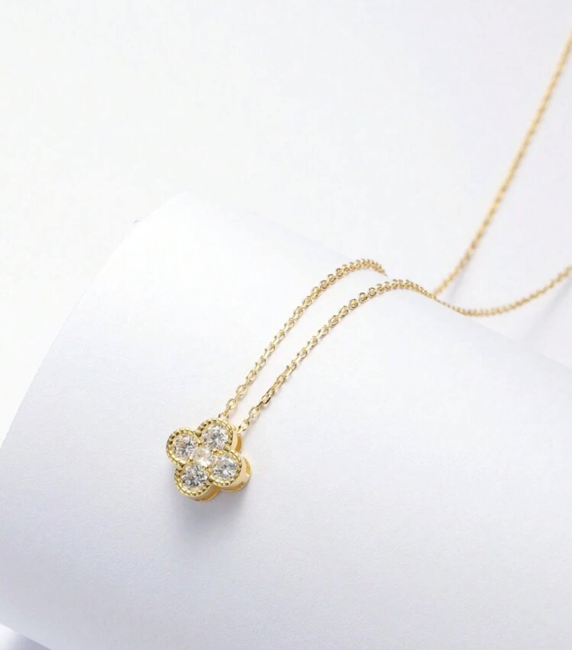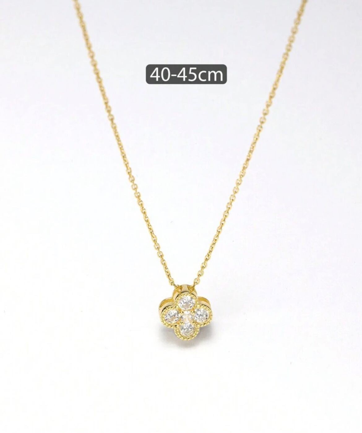 925 Sterling Silver Elegant Gold Clover Pendant Necklace This elegant gold clover pendant necklace is made of 925 sterling silver, featuring a natural main stone with a silver color. The pendant has a charming clover shape and a ball closure for easy wear. It is suitable for various occasions such as Mother's Day, Christmas, weddings, anniversaries, birthdays, and more. The necklace has a 16-inch length and is adjustable, making it a versatile and stylish accessory for any jewelry collection.