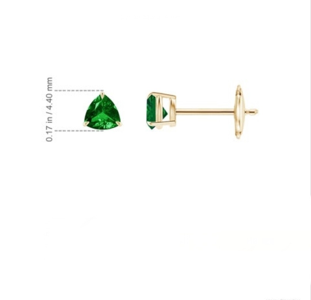 Elevate your jewelry collection with these exquisite 925 Sterling Silver Earrings, featuring mesmerizing trillion-cut lab-created blue emeralds. Each earring showcases a single, eye-clean gemstone, meticulously crafted to highlight its vibrant hue and sparkling allure. The silver's lustrous gold tone provides a luxurious contrast, making these earrings a striking addition to any outfit. Designed for versatility, the earrings offer an adjustable hook closure, ensuring a comfortable fit for all-day wear. Perfect for the festive season or to add a touch of elegance to your daily wardrobe, these stud earrings are a testament to timeless fashion. With their sophisticated design and eye-catching gemstones, they are sure to become a cherished part of your collection. Details:- Material: 925 Sterling Silver Gemstone: Lab Created Emerald Stone Size: 7 MM Shape: Trillion Plating: Gold Available In All Size Please Contact us.