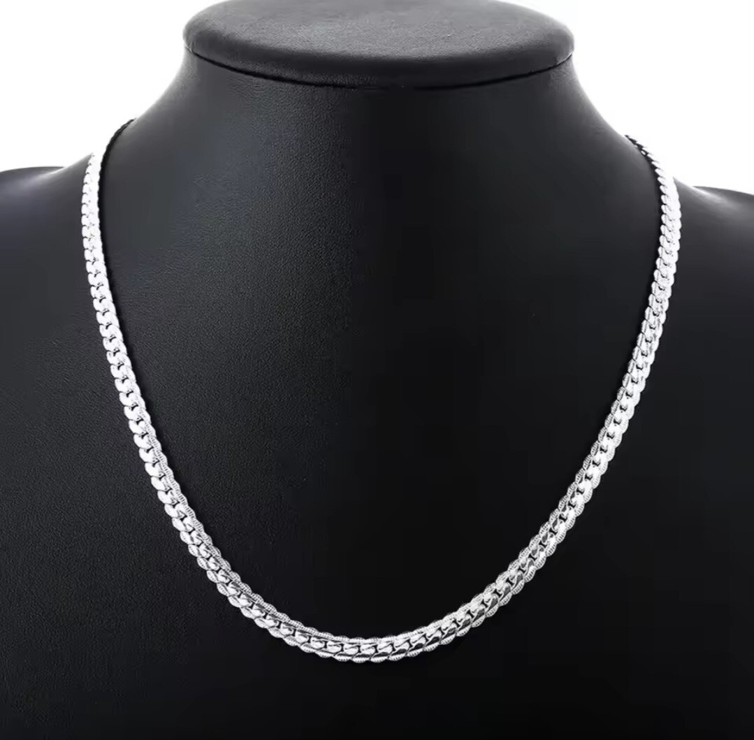 925 Sterling Silver-Plated Chain Luxury Gorgeous Charm Brand Design Necklace 6mm 50 cm Unisex for Men & Women. Good for Pendent or single use. Size Approximately. Length: 50cm Width: 6 mm Colour appearance may be different on Pc display, Backgrounds surroundings and angle of lights, the actual product colour may be slightly different from the images . Please check all pictures for full description . If any question, please don't hesitate to ask. Buy with confidence. For any issue, please contact us first I’m sure any problem can be easily taken care of.