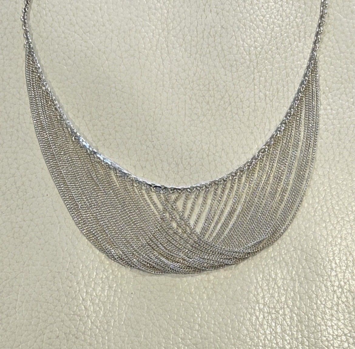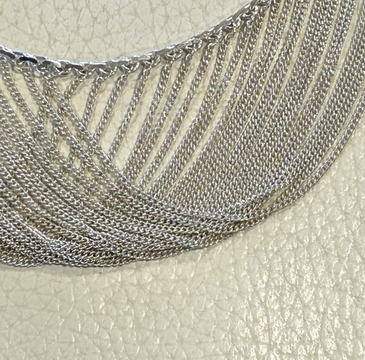 925 Sterling Silver multi strand looped necklace, lobster clasp closure, approximate length is 18”. Never worn, necklace is in excellent condition!