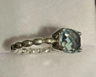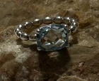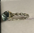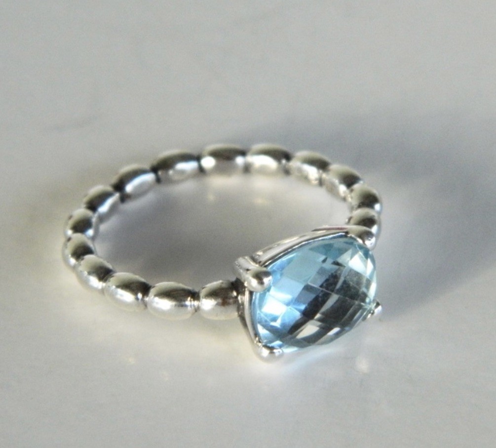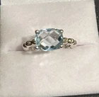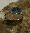 This retired Authentic Pandora Cool Breeze Ring is made of 925 Sterling Silver and features a Blue Topaz Stone in a rectangular shape. The ring is signed by the brand and has a prong setting style. It is perfect for special occasions like Mother's Day, engagement, wedding, anniversary, and more. The cocktail style ring is vintage and has a band width of 2.4mm, making it a beautiful and meaningful piece for any jewelry collection. “ No original box or dust pouch “