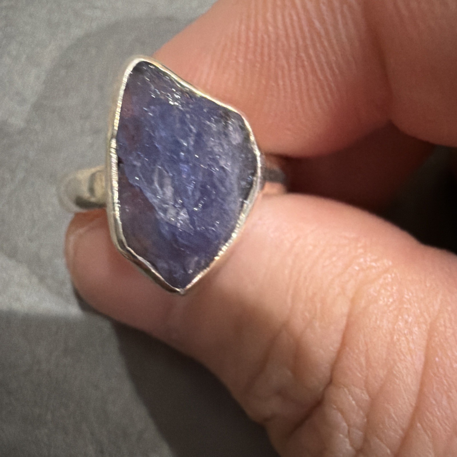 Beautiful piece of natural rough tanzanite encased in a 925 sterling silver ring Size 9 Absolutely stunning piece
