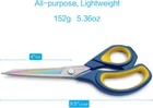 SHARP DURABLE STAINLESS STEEL BLADES: Forging press manufacturing process enables high-density steel that makes 3 times harder than ordinary stainless steel, precision-ground offer a lasting sharp edge that cuts all the way to the tip. ANTI-RUST TITANIUM COATED BLADES: Multicolor titanium coating blades resist wear, scratches and corrosion, effectively preventing adhesive residues sticking to the blades such as glue or tape, making them ideal for almost heavy duty tasks. EFFORTLESS CUTTING & MULTIPURPOSE: Easy for cutting more than 16 layers of fabrics, textile, cotton, denim. Perfect for sewing, tailoring, quilting, dressmaking, cutting patterns, alterations, leather, upholstery, hand arts and crafts, home and office heavy duty cutting use etc. ERGONOMIC HANDLE DESIGN: Navy blue yellow comfort grip scissors have a contoured design with a rubber inner ring to help reduce hand fatigue while cutting, meantime, ergonomic design is maximizing cutting control and sensitivity. Every Product is independently tested and selected to ensure the performance you expect. The result is a quality item backed by our commitment to your satisfaction. Product Description LIVINGO Professional Fabric Scissors - Titanium Coated Hot Forged Heavy Duty Use Here's a comparison of the different styles of LIVINGO scissors Add to Cart Add to Cart Add to Cart Add to Cart Add to Cart Add to Cart Add to Cart Customer Reviews 4.8 out of 5 stars 32,815 4.7 out of 5 stars 3,216 4.7 out of 5 stars 200 4.7 out of 5 stars 12,214 4.8 out of 5 stars 5,402 4.6 out of 5 stars 4,689 4.2 out of 5 stars 1,554 Price $13.99 $ 13 . 99 $12.99 $ 12 . 99 $16.99 $ 16 . 99 $12.99 $ 12 . 99 $20.99 $ 20 . 99 $15.99 $ 15 . 99 $9.59 $ 9 . 59 Length 9.5" 8.5" 8.5" / 5" / 4.5" 8" 8.5" / 9.5" 8" 10" Package Quantity 1 3 3 2 2 1 1 Blade Treatment Forged, Titanium Coated, Sharp Precise Grinding Forged, Titanium Coated, Sharp Titanium Non-Stick Forged, Titanium Coated, Sharp Precise Grinding Precise Grinding Handle Type Cushioned Comfortable Handle Cushioned Comfortable Handle Cushioned Comfortable Handle Cushioned Comfortable Handle Cushioned Comfortable Handle Comfortable Handle Cushioned Comfortable Handle Sharp & Durable ✔ ✔ ✔ ✔ ✔ ✔ ✔