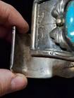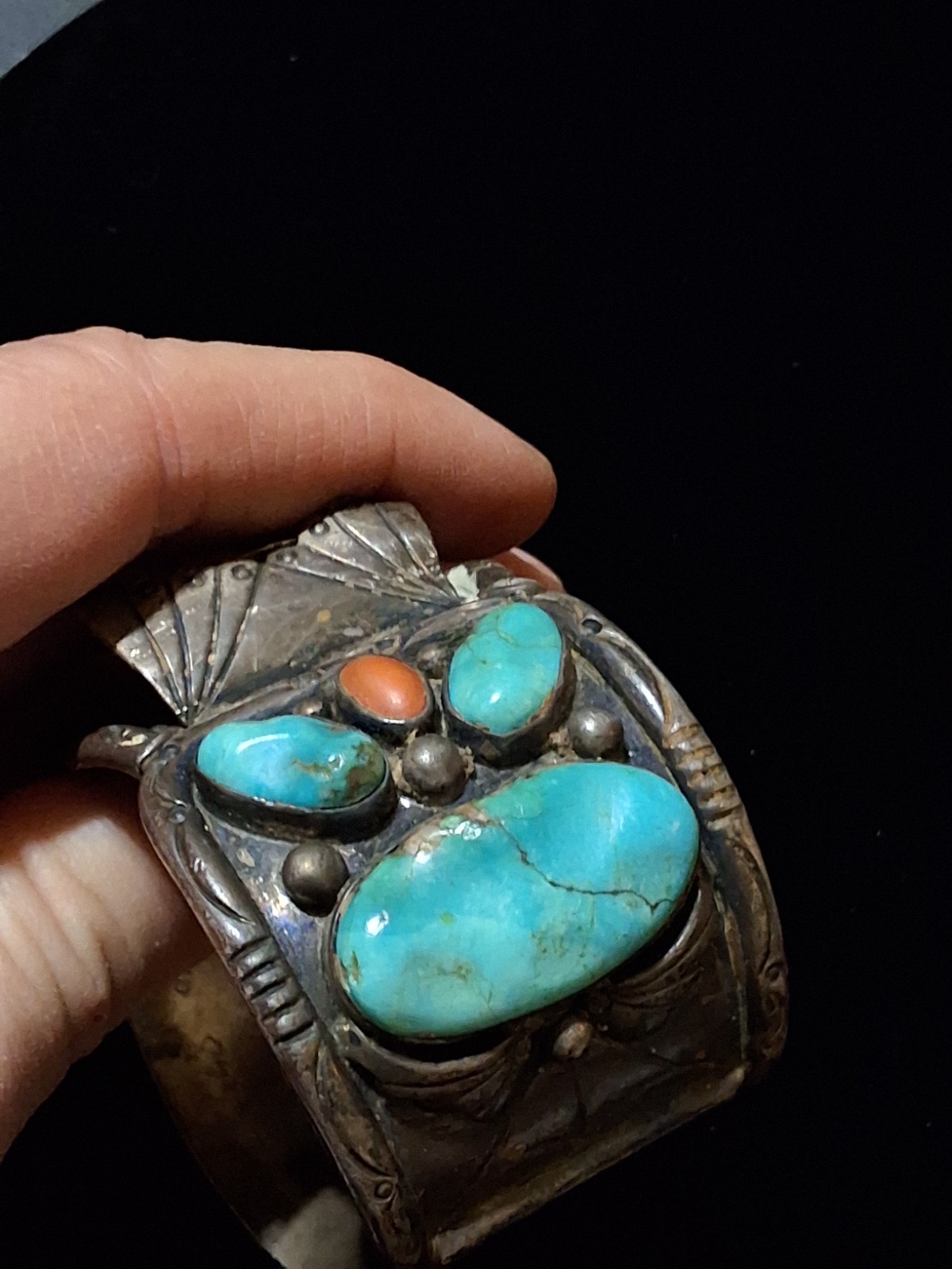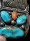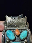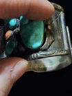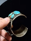 This vintage Native American Navajo silver watch band features a stunning blue turquoise stone set in sterling silver. The traditional charm, cuff style, and oval-shaped main stone make it a unique and beautiful piece of jewelry. Handmade in the United States, this signed bracelet exudes a sense of history and craftsmanship, perfect for those who appreciate ethnic and regional jewelry. The intricate design and quality materials make this watch band a standout accessory for both men and women. MARKED ZUNI, NEW MEXICO, NOT SURE IF THAT WAS THE MAKER OR OWNER SHIPPED USPS GROUND ADVANTAGE