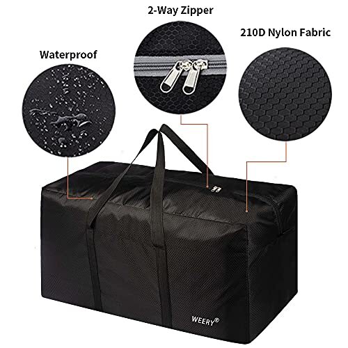 Return Policy Fast Delivery Trusted seller Extra Large Duffle Bag,96L Lightweight Travel Bag, Foldable Waterproof Duffel Bag for Men Women,Black Product Description DURABLE & HIGH QUALITY: WEERY extra large duffle bag is made out of high quality honeycomb nylon fabric and premium zippers. Suitable for carrying Sports/Hunting/Traveling/Hiking Gear or any other Outdoor activity.Which offers you better experience. FOLDABLE & LARGE CAPACITY: Travel duffle bag(Product Dimensions of unfolded size: 31"*12"*16").Extra large duffle bag can be folded into a really small size taking up so little space but opens up to have about 96L capacity of travel bags to use as a luggage bag in case that your suitcase swells. This travel duffel bag is designed to work best - to give you an organized lightweight travel experience. MULTIPURPOSE: Easily held all your travel items, great choice for duffle bag, travel, weekend,shopping, overnight, camping and picnic. EASY STORE & CARRY: The duffle bag large size for carrying is better than a heavy-duty carrying case or a carrying container, and can be easily folded into a small size, providing more convenience for storage at home, car. LIFETIME GUARANTEE: We do our best for matching your expectation mostly so if you have any dissatisfaction,please let us know at time,we will be really happy hearing from you and we will solve it for you as Soon as possible. Shipping Returns Payment Shipping Shipping is FREE to all addresses other than APO/PO boxes in the lower 48 states. All our stock ships from US-based warehouses. Shipped via USPS or UPS (depending on location and package weight) Unless stated otherwise, all orders will ship within 24-72 hours of your payment being processed. Check our feedback to see the great reviews of FAST shipping we offer. Returns Seller does not accept returns Payment We currently accept payment via eBay managed payments only. Once payment is cleared, we will dispatch your shipment within 1-3 business days. Please refer to the "Shipping" tab for more information regarding shipping speed to your destination.