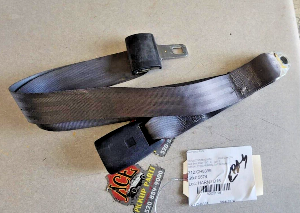 NOTE: THIS PART WILL FIT ALL THE VEHICLES MENTIONED TO THE EXCLUSION OF ALL ELSE. ANYONE LOOKING TO INSTALL THIS ON A DIFFERENT YEAR/MODEL THAN I HAVE SHOWN HERE MAY DO SO AT HIS OWN RISK. PLEASE CONTACT US AT 5208899000 IF YOU HAVE ANY QUESTIONS This listing is for the following item: This is a used Left REAR Buckle with Lap Belt From a 1999 Dodge Dakota Club Cab It is in good used condition. The buckle worked fine when I checked it. The belt looks good - no tears, no frays. I did notice some minor rust on the male buckle. PLEASE SEE PHOTOS!!! I guarantee it to be functional. It will fit: DAKOTA 97-00 Club Cab, Left, Buckle with Lap Belt NOTE: THIS PART WILL FIT ALL THE VEHICLES MENTIONED TO THE EXCLUSION OF ALL ELSE. ANYONE LOOKING TO INSTALL THIS ON A DIFFERENT YEAR/MODEL THAN I HAVE SHOWN HERE MAY DO SO AT HIS OWN RISK. It is the buyer's responsibility to determine if this part will fit his/her vehicle. Questions? Not what you're looking for? Please contact us if you need something else. _____________________________________________________ INTERNATIONAL CUSTOMERS: International shipping