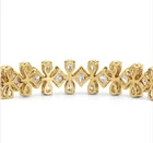 This 9Ct Pear Simulated Diamond 925 Yellow Sterling Silver Attractive Tennis Bracelet features a pear-shaped simulated diamond as the main stone with a width of 3.5mm. The bracelet is crafted in sterling silver and has a push lock closure. It is 7.5 inches in length and can be personalized according to the buyer's requirements. The design is handmade and includes adjustable features, an engraved charm, and is nickel-free. Perfect for occasions like engagements, weddings, birthdays, and more, this bracelet is a stunning piece for adding a touch of elegance to any outfit.