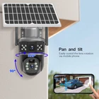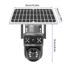 Description Features: dual lens, dual screen viewing Option: WIFI=WIFI 2.4Hz connection 1:3MP+3MP+3MP million pixel outdoor solar monitoring camera 2. High definition: Shoot with a high-definition camera to ensure the effectiveness and quality of video shooting, allowing you to have real-time control of the outdoor environment. 3. Night vision system: optional infrared or color night vision, which can monitor the doorstep in real-time at any time to ensure safe and smooth enjoyment. 4. APP V380 Pro remote operation: functions such as remote operation, photography, and video recording, allowing remote control of the outdoor environment. 5. Voice intercom: With voice intercom function, you can transmit sound to the external environment through your phone or replay the sound to visitors through the device. 6. Custom alerts: supports custom alerts, and when you receive an alert, it will immediately send an alert message to your phone 7. Multi user remote access: Share the same camera with your family, leave everything you protect, and pay more attention to your home. 8. SD card: The maximum size of the SD card is 128GB, 9. Waterproof/Dustproof Ip66: The camera casing is made of high-quality ABS plastic and has waterproof, sunscreen, and dustproof functions. It is suitable for any environment. 10. Motion detection and automatic tracking: After locking the target, the camera will automatically adjust the pan tilt rotation. Track moving objects, cars, pets, humans, and push alert notifications to your smart Phone. Package List: 1x 9MP solar camera 1x bracket 1x solar panel with extension cable 1x installation package 1x instruction manual 1x 32GB card