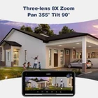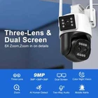 9MP 4K HD WiFi IP Camera Outdoor 8X Zoom Three Lens Dual Screen PTZ Cam Auto Tracking 8MP Security Video Surveillance CCTV Alexa Main Features: - 4K 9MP / 8MP ultra-high-definition picture, bringing you a more high-definition visual experience; - 8x Zoom: Only 9MP triple-lens pixel cameras support 8x zoom function; - H.265 video format, allowing you to watch smoother videos; - AI human body recognition and detection, automatic humanoid tracking; - Email alarm, real-time push to protect the safety of your home; - 5 infrared LEDs + 5 white LEDs, presenting you with clear and colorful day/night images; - 3 image modes: smart mode/infrared mode/color mode; - Built-in high-quality speaker and microphone, two-way conversation is barrier-free; - Echo cancellation and noise suppression technology, perfect full-duplex voice effect; - Support 2.4GHz WiFi connection (5G WiFi is not supported); - Support RJ-45 network cable connection; - Real-time image transmission, adaptive network; - Support ONVIF; - Support NVR devices; - App: iCsee Three Lens and Dual Screen -There are 2 video screens in APP, the upper one is fixed position camera and the lower one is PTZ camera. The camera has two lenses, the upper lens is fixed, and the lower lens can rotate, perfectly achieving one camera to monitor two directions. In the APP, dual screen display of monitoring images 8X Hybrid zoom (Only 9MP camera support ) * If you need view more details, press and hold the screen with both hands to Zoom in/out and see more details. AI Human Tracking CCTV Camera This WiFi surveillance camera has the function of automatic tracking of human movement, offering you complete protection. When you or any other person moves in front of the frame, the camera will always move leaving the person who passed by the camera Clear Night Vision CCTV Camera *Equipped with IR-Cut led lights, up to 20 meters night vision distance, so that you can get high quality video even at night. *The smart IR-Cut filter switches automatically between day and night. Alexa Camera WiFi---Support Alexa Assistant *When you give voice command to alexa echo or alexa device, the alexa echo would show the security camera live video. Surveillance Detail Various Installation Methods - Camera supports side mounting and ceiling mounting, you can install it according to your needs Support Bluetooth Connection WiFi Camera With RJ45 port * The WiFi antenna modules of this wireless security camera offers a more stable network connection and wider range, significantly reduces poor connection issues. Only support 2.4gHZ Wifi * Support RJ45 cable connection * Support NVR devices; * Support ONVIF; 360° PTZ Camera *Remote control the surveillance camera, support 355° view angle, you can monitor anywhere and any details you want via mobile App *Every corner cover *Camera wifi 360 Two Way Audio CCTV Camera *Built in microphone and speaker,support real time video,which allows you talk with your visitor in real time wherever you are. IP66 Waterproof Video Surveillance *Level IP66 which can provide surveillance camera normal working, and keep camera durable. *No worry about other unexpected conditions, such as thunder, rain, snow. Micro SD Card & Play Back *Built-in SD card slot, thie video surveillance camera support up to 128g Micro SD card (SD card not includeed) *The PTZ camera also supports encrypted secured cloud storage, protects recording in cloud against any footage loss result from damage such as theft of the security camera Remote Access &Control You can remote control, view and talk via the WIFi camera, no matter you are in the world.