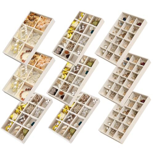 30 Days Return Policy Fast Delivery Trusted seller Jewelry Organizer for Drawer Set of 9, Velvet Jewelry Tray Stackable Jewelry Organizer Display Trays Divided Earring Storage Containers (Beige) Product Description Set of 9: Include 18 grids tray 3 pcs, 15 grids tray 2 pcs, 12 grids tray 2 pcs, 6 grids tray 2 pcs, these trays can perfectly storage your earrings studs necklaces and rings etc Extensive Usage: Trays for jewelry can be stacked together to save space and its also great to insert into drawer for convenient store and clear display Each Tray Measures: 8.3 x 4.9 x 1 inches, keep everything organized and easy to access, easier and faster to pick up the right items to wear with your outfit Removable Inner Dividers Design: You can resize the compartments of jewelry storage containers according to your personalized storage needs, keep jewelry neatly displayed Premium Material: Jewelry organizers and storage trays are made of composite board which is wrapped with soft velvet, protect your precious jewelries away from scratches and other damages Shipping Returns Payment Shipping Shipping is FREE to all addresses other than APO/PO boxes in the lower 48 states. All our stock ships from US-based warehouses. Shipped via USPS or UPS (depending on location and package weight) Unless stated otherwise, all orders will ship within 24-72 hours of your payment being processed. Check our feedback to see the great reviews of FAST shipping we offer. Returns As our valued customer, we will do our best to make sure the product you receive arrives to you on time and as expected. If you are not satisfied with your purchase, please contact us within 30 days of receiving your order to process a return. Payment We currently accept payment via eBay managed payments only. Once payment is cleared, we will dispatch your shipment within 1-3 business days. Please refer to the "Shipping" tab for more information regarding shipping speed to your destination.