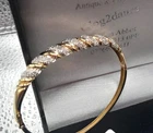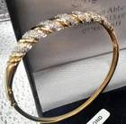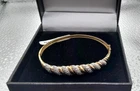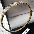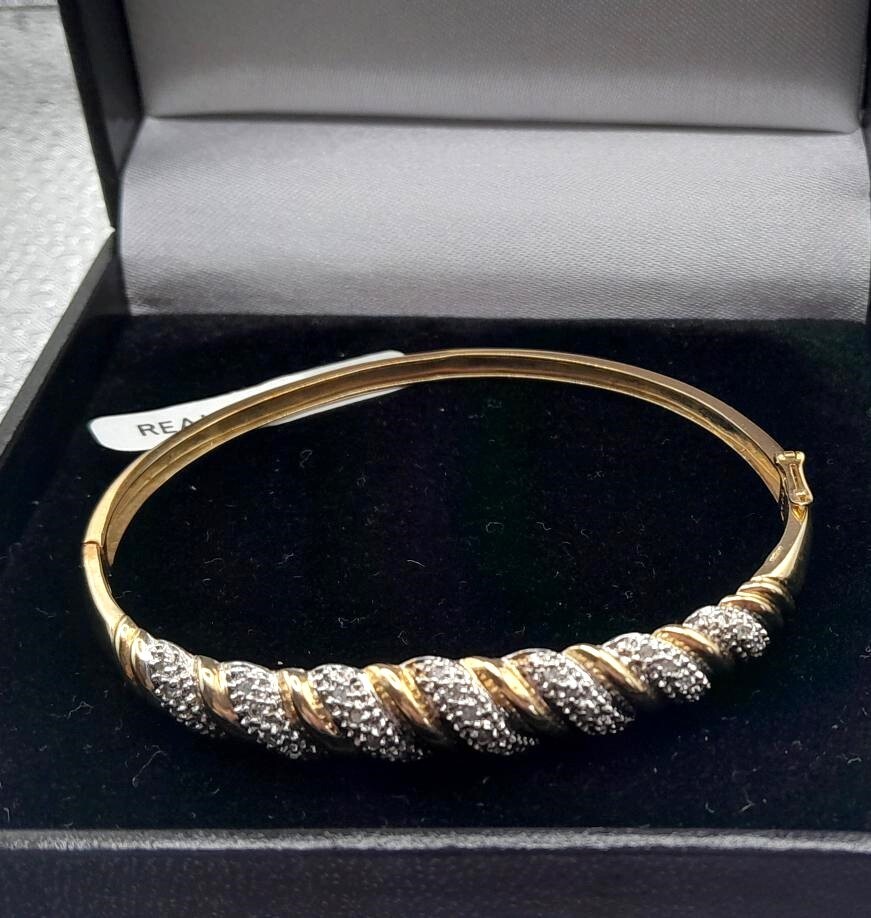 STUNNING 9CT GOLD & 1/4CT DIAMONDS SPARKLY BRACELET. BOXED Such a pretty bangle , the diamonds are set in white gold which shows the sparkle off, please view all photo's as it is the actual bangle you will receive These make exceptional gifts and gentlemen ladies love sparkle. Just 136 sleeps until xmas - people have strated buying now as they get all the best pieces. - See all Pictures đź‘€ much better in the flesh, WILL FIT UP TO 7" WRIST OR LESS -HINGED SO OPENS TO PLACE ON WRIST WITH EASE HALLMARKED 375 9CT ON EDGE OF BANGLE AND 25 FOR 1/4 CT DIAMODS ON THE INSIDE GOOD LUCK & DONT MISS IT AS IT WONT BE WITH US LONG!