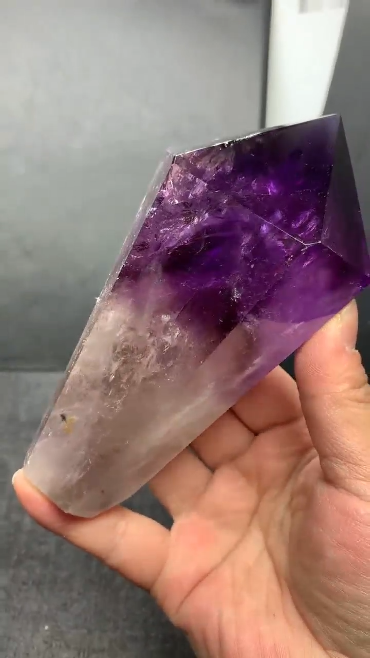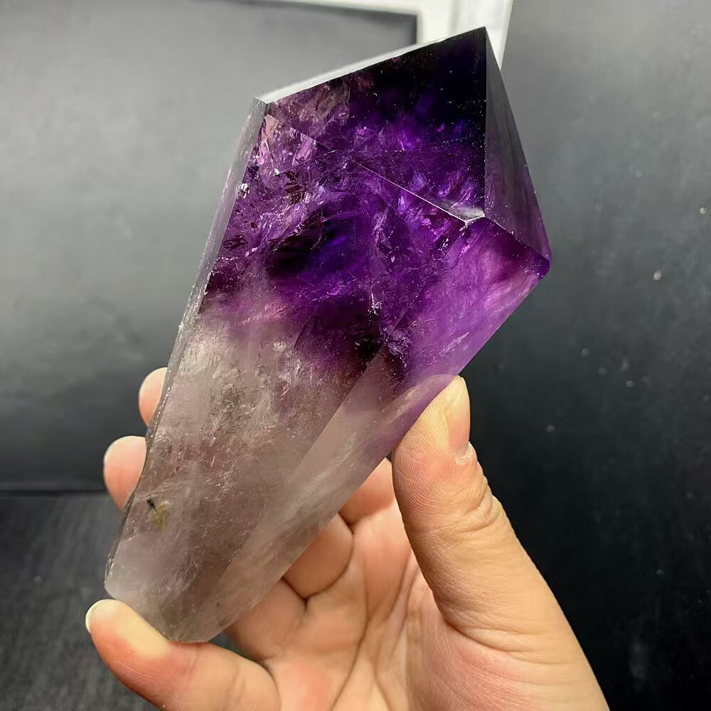 415g Natural Amethyst Quartz Obelisk Crystal Tower Point Wand with Stand for Reiki Healing