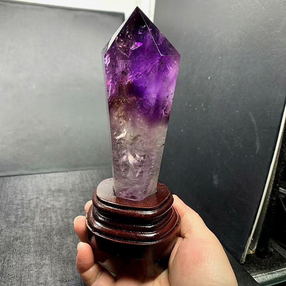 0.75LB Natural Amethyst Quartz Obelisk Crystal Tower with Stand for Reiki Healing