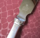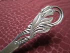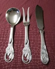 We are pleased to offer a group of 3 beautiful silverplated serving pieces from A Prip of Denmark. The handles have a pierced floral motif; unusual and lovely. Included are a salad serving set and a cake knife - a beautiful find! Condition: Excellent - no silver wear or loss, heel wear or shadows. There are no monograms and the pattern is crisp and well defined. They have been hand polished so there will be no surprises; any dark spots in the photos are reflections only. Size: Salad set is 8 1/2" and 8 7/8" long, cake knive is 10 3/4". Please visit Hi Ho Silverplate, our ebay store, for lots of silverplate including flatware, holloware and other antiques - check out our other items! Visit our sister store, DameDamaskAntiques, for antique linens for your table, bedroom and bath.