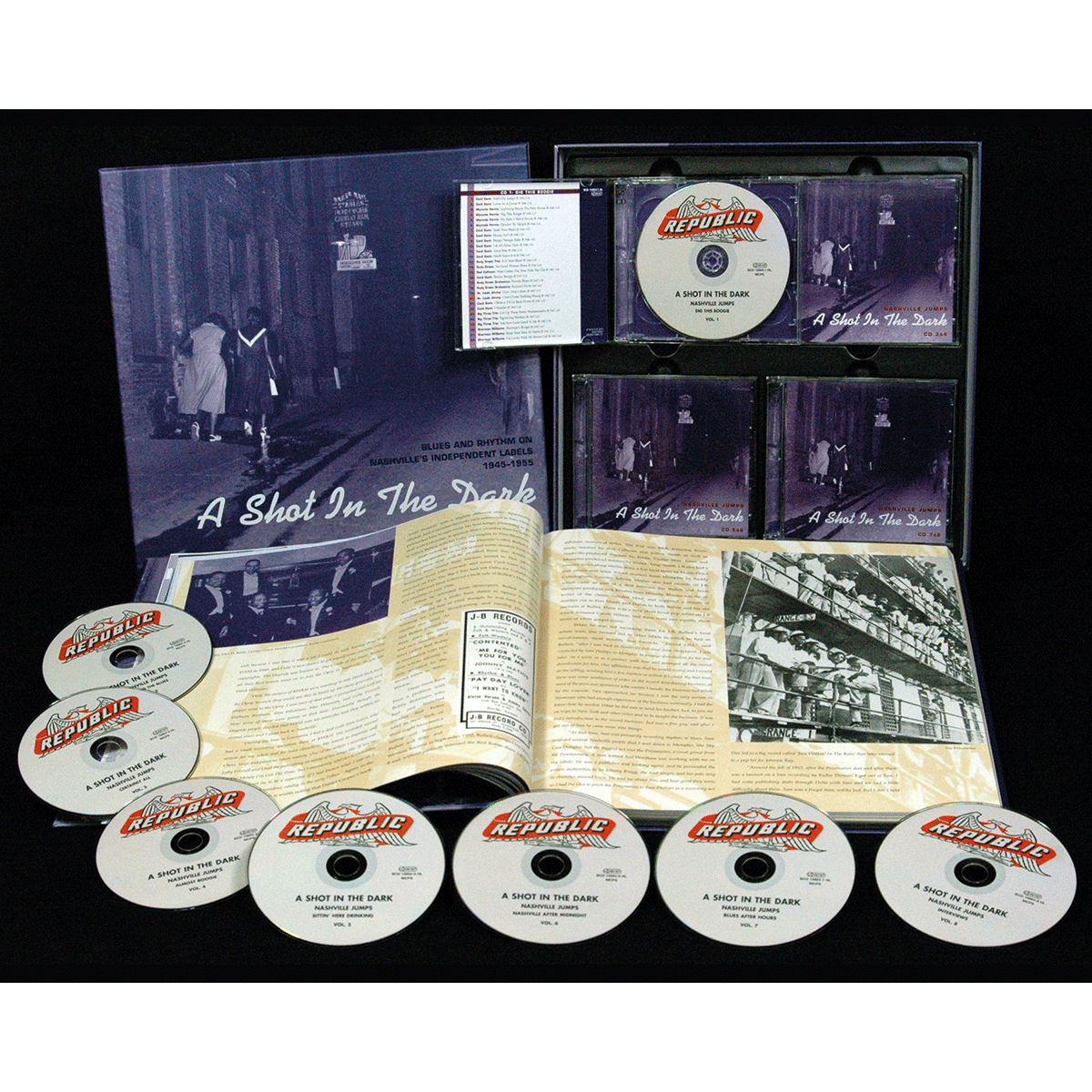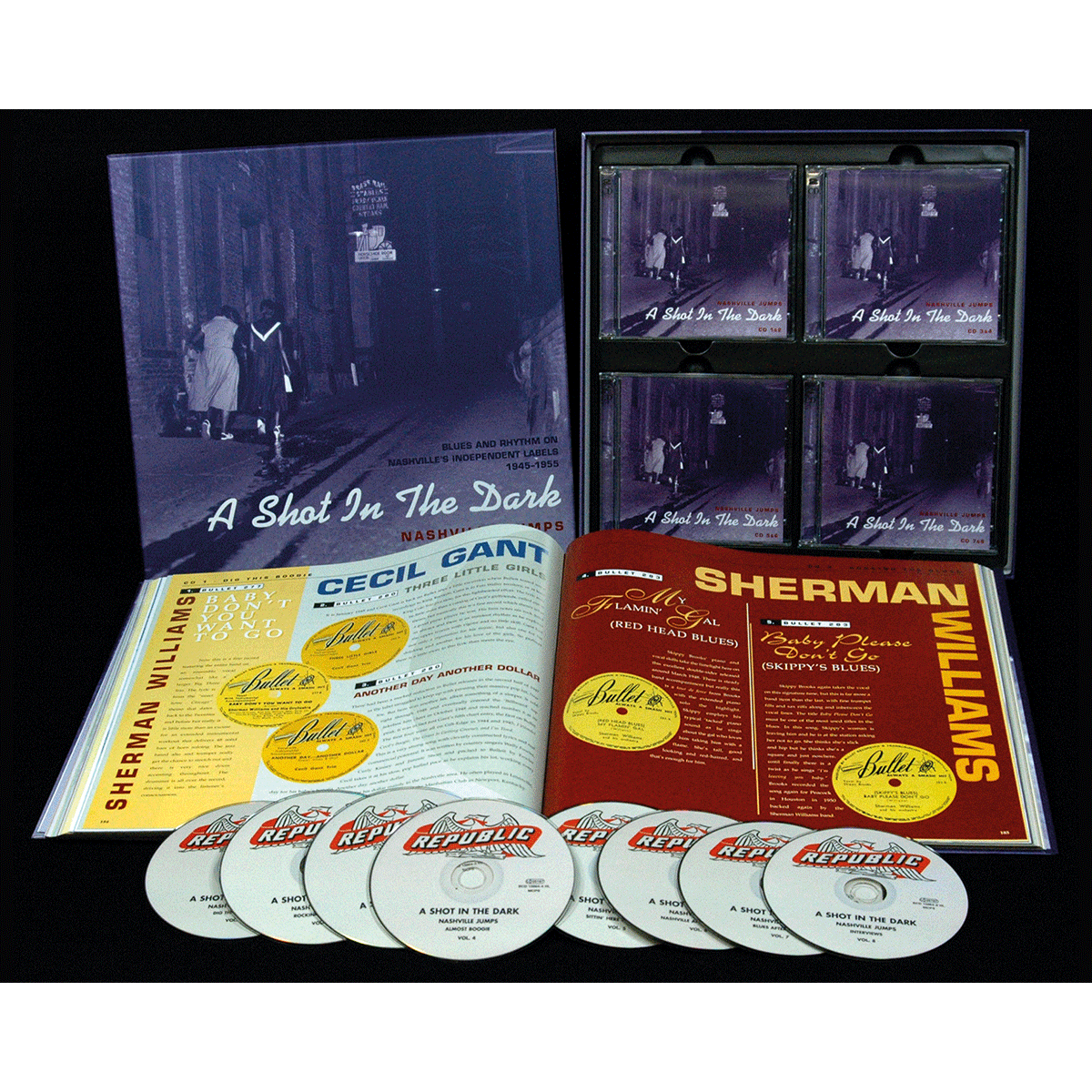 A Shot In The Dark-Blues & Rhythm, Nashville Jumps. Deluxe Box-Set. - Various - B00M4QNOPQ Klassik Pop und Rock Jazz Schlager Weltmusik Chanson Editionen Various.A Shot In The Dark-Blues & Rhythm, Nashville Jumps. Deluxe Box-Set.. 2014 8 CDs, 200 Titel, 284-seitiges, gebundenes Buch, Box im LP-Format. Beschreibung Erleben Sie die frühen Blues- und R&B-Aufnahmen aus Nashville, Music City USA. Originalaufnahmen für Labels wie u.a. Bullet Records, Tennessee, Excello oder Nashboro. Cecil Gant, Wynonie Harris, B.B. King, Christine Kittrell, Don Q. Pullen, Louis Brooks u.v.m. gehörten zur pulsierenden afro-amerikanischen Musikszene in Nashville. Im Begleitbuch erzählt Martin Hawkins die Geschichte der Musikindustrie in Nashville von 1945 bis 1955. Von Martin Hawkins und Colin Escott stammen Kommentare zu jedem einzelnen Song und Kurzbiografien zu jedem einzelnen Künstler. Hunderte von Fotos aus den frühen Tagen der Musikszene in Nashville runden diese wundervolle Box ab. EAN: 5397102158643 Interpreten: Various Label: In-Akustik Erscheinungsdatum: 2014 Altersgruppe: 0-99 Kurzbeschreibung Titel: A Shot In The Dark-Blues & Rhythm, Nashville Jumps. Deluxe Box-Set., Autor: Various, Verlag: In-Akustik , Sprache: Englisch, Maße: 31.00x31.00x5.00 cm, Gewicht: 1000 g, Verkäufer: ebay@froelichundkaufmann.de, Schlagworte: A Shot In The Dark, Deluxe Box-Set, Blues & Rhythm, Nashville, Jazz, Blues, Various Powered by INFORIUS