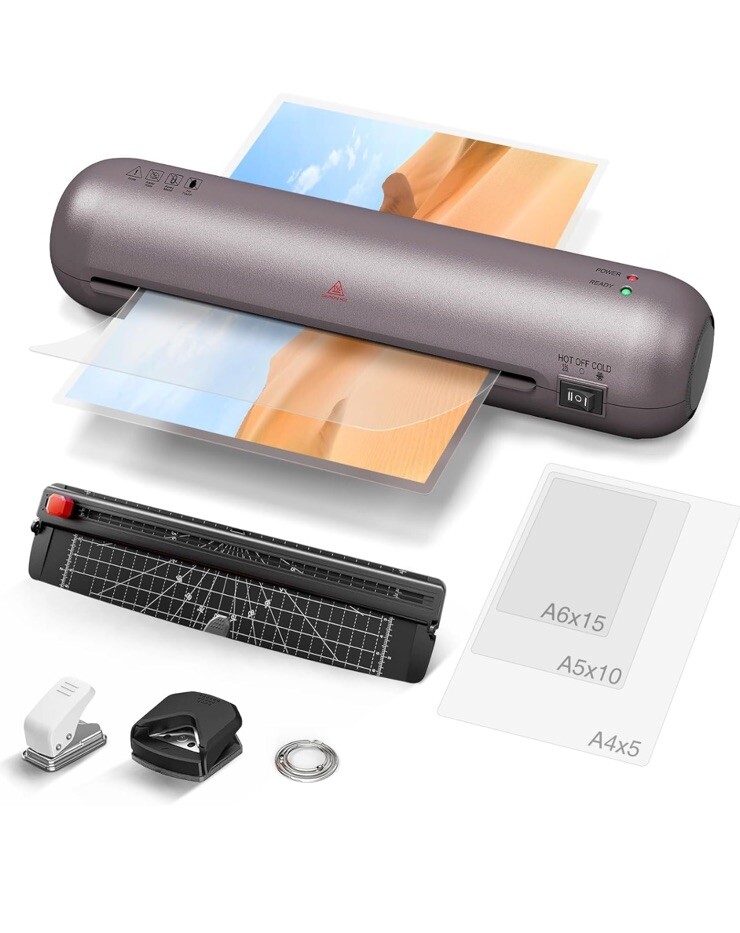 Laminator, A4 Laminator Machine, 9 Inch with 6 in-1 Personal Desktop Laminator Hot & Cold Laminator Kit with Laminating Sheets 30pcs, Fast Warm Laminator for Office, School, Home, Business, Creative Features & details โคใ๐ ๐๐ข๐ง ๐ ๐๐ฌ๐ญ ๐๐๐ซ๐ฆ๐ข๐ง๐ -๐๐ฉ & ๐๐ฎ๐ข๐๐ญ ๐๐๐ฆ๐ข๐ง๐๐ญ๐ข๐ง๐ ใThe SL280 laminator warms up within 2min which saves your waiting time and improves your work efficiency. Uses leading technology to solve noise interference won't disturb others, and create high-quality, wrinkle-free โคใ๐๐จ๐ญ & ๐๐จ๐ฅ๐ ๐๐ฎ๐๐ฅ-๐๐จ๐๐ ๐๐๐ฅ๐๐๐ญ๐ข๐จ๐งใThe SL280 laminator offers two lamination modes โ hot & cold. It can meet your different needs, you can choose the best method for your needs. (Note: The cold mode needs special sheets not included) โคใ๐๐ฉ๐ ๐ซ๐๐๐๐ ๐๐๐ ๐๐๐ฆ ๐๐๐ฅ๐๐๐ฌ๐ ๐ ๐ฎ๐ง๐๐ญ๐ข๐จ๐งใTo prevent paper jams and stress during operation SL280 lamination upgraded ABS Jam release function. If the film is blocked, turn off the device and then press the ABS button to easily solve the film jam problem โคใ๐ ๐ข๐ง-๐ ๐๐๐ซ๐ฌ๐จ๐ง๐๐ฅ ๐๐๐ฆ๐ข๐ง๐๐ญ๐จ๐ซ ๐๐๐๐ก๐ข๐ง๐ใThe full set includes laminator*1, Paper cutter*1, Corner rounder*1, laminadora pouches*30pcs(A4*5/A5*10/A6*15), Lron Ring*1, Hole Puncher*1, User Manual*1, to meet your needs. Our personal laminator has a wide range of applications suitable for home, office, and school. It's usually used for preserving important documents and precious photos.