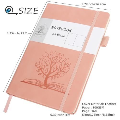 Return Policy Fast Delivery Trusted seller A5 Journal Notebook, Leather Blank Notebooks 160 Pages Diary 100gsm Thick Paper Writing Hardcover Notebook with Pocket for Work Men Woman 8.4 x 5.7 in (1 Pack-Blank, Pink) Product Description A5 Blank Journal Notebook: 8.4 x 5.7 in blank journal features durable and waterproof leather cover, Pen Holder, Expandable Back Pocket + Elastic Closure Strap +Colored Ribbon. High Quality Thick Paper: 160 Pages 100gsm acid-free thick paper,our blank journal paper is thicker than other notebooks, use most pens, pencils, and markers without ghosting and bleed-through. Fashionable & Practical: A tree is printed on the cover of the blank journal, adding a sense of style to the solid color cover. Meanwhile, the inside contains a page of personal memoranda and a calendar. Multiple Colors & Wide Uses: The blank journal notebook is selected in 5 popular colors, and you can choose favorite color for business, school, work, diary, gift. Satisfaction Guaranteed - If you have any problem with the blank journal notebook you received, you can contact us at any time. I also hope that you can give us valuable suggestions. Shipping Returns Payment Shipping Shipping is FREE to all addresses other than APO/PO boxes in the lower 48 states. All our stock ships from US-based warehouses. Shipped via USPS or UPS (depending on location and package weight) Unless stated otherwise, all orders will ship within 24-72 hours of your payment being processed. Check our feedback to see the great reviews of FAST shipping we offer. Returns Seller does not accept returns Payment We currently accept payment via eBay managed payments only. Once payment is cleared, we will dispatch your shipment within 1-3 business days. Please refer to the "Shipping" tab for more information regarding shipping speed to your destination.
