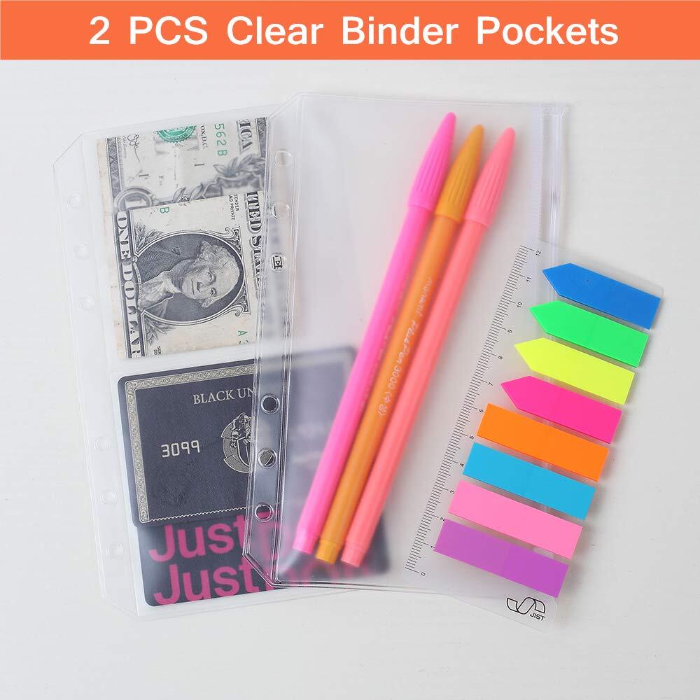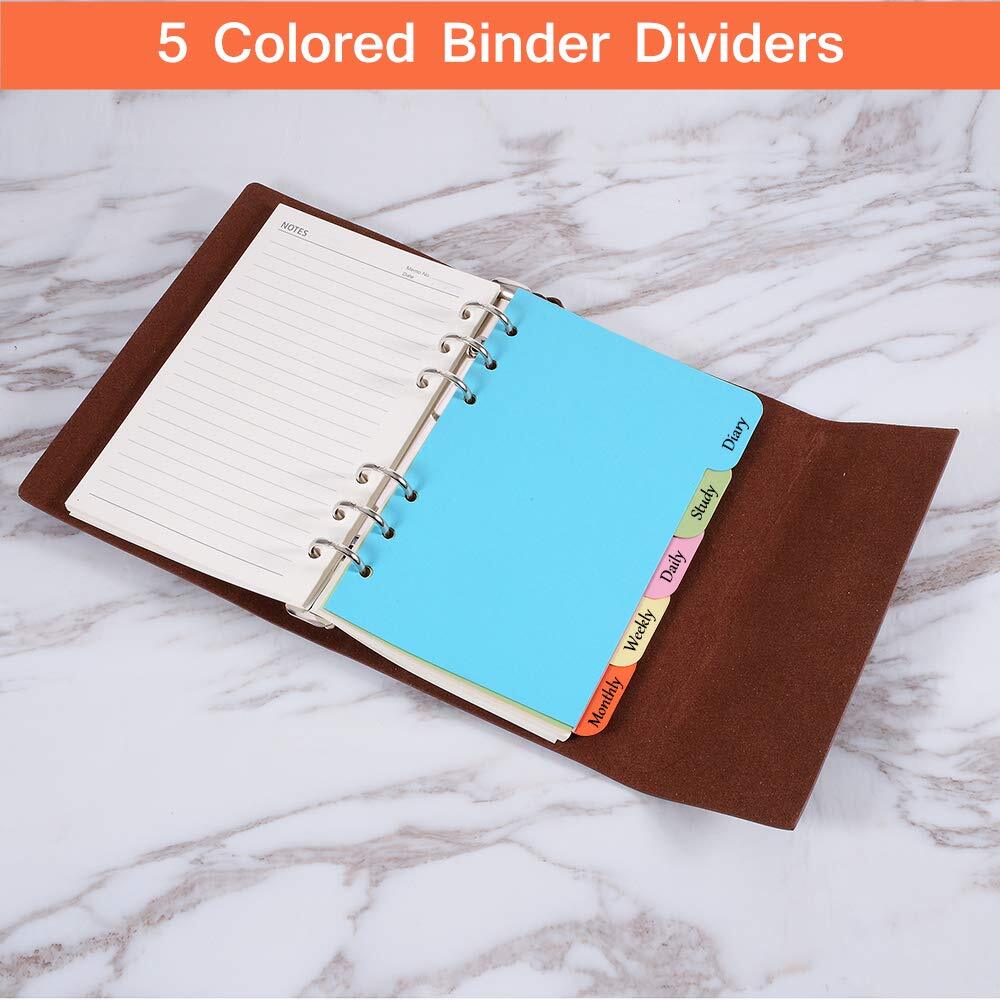 A6 Binder Paper: Totally 200 Sheet/400 Pages, 7mm ruled loose leaf paper, thick off-white lined paper for no bleeding through and feathering. Personal information page and 2020/2021/2022 calendar page for planner organizer Self Adhesive Index Tabs: Totally 160 neon page markers. 8 Fluorescent colored with 4 rectangular shapes and 4 arrow shapes for eye-catching, colorful flags make it easy to go back and reference information. Sticky and removes cleanly 5-Tab Binder Dividers: 5 Tabbed postcard dividers for keeping binders neatly organized and presentable. Loads easily into 6 rings binder and tabs for flipping to the desired section fast. Ideal for home, school, or office Clear Binder Pockets: Totally 3 Pockets, PVC material, waterproof and durable to keep pens, bill, money, vouchers, credit cards and small office supplies tidy and organized, and protect and them without hole punching. Clear view for quick and easy identification A6 Binder Inserts: 2 Pack 200 page Paper + 160 PCS Colored Index Tabs + 5 Colored Dividers + 1 PCS Zipper pocket + 1 PCS 2-Pouch Filling Bag. Perfect notebook kit for loose leaf binder, journal, notebook, planner, and agenda to ensure productivity