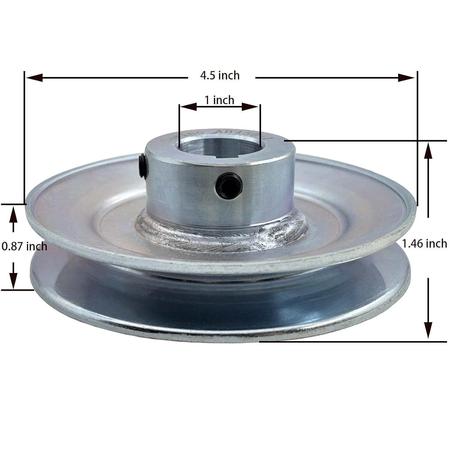 Pulley outside diameter:4.5 inch,1 Groove Inside Diameter: 1 inch,Standard Keyseats(1/4X1/8),Screws quantity:2,1 x Wrench Standard V-Belt Pulley: For V-Belt Section A,B,5L,4L,AX,BX Durable: 1020 steel, solid construction, Zinc-plated to prevent rust This V-Groove Drive pulley is a general Sheave for power transmission, which is applied to compressors,motors, lawn mower,snow blowers and other power transmission devices.The heavy duty steel The AB450-1 Single Groove Web Sheaves V Belt Pulley is a high-quality pulley designed for industrial automation and motion control systems. With a 1-inch bore and 4.5" outer diameter, this pulley features 20 teeth and is suitable for belts with a width of 11mm. Made in the United States, this pulley has a lightweight design weighing 1.37 pounds, making it easy to transport and install in various mechanical systems. Perfect for businesses and industries seeking reliable and efficient power transmission solutions.