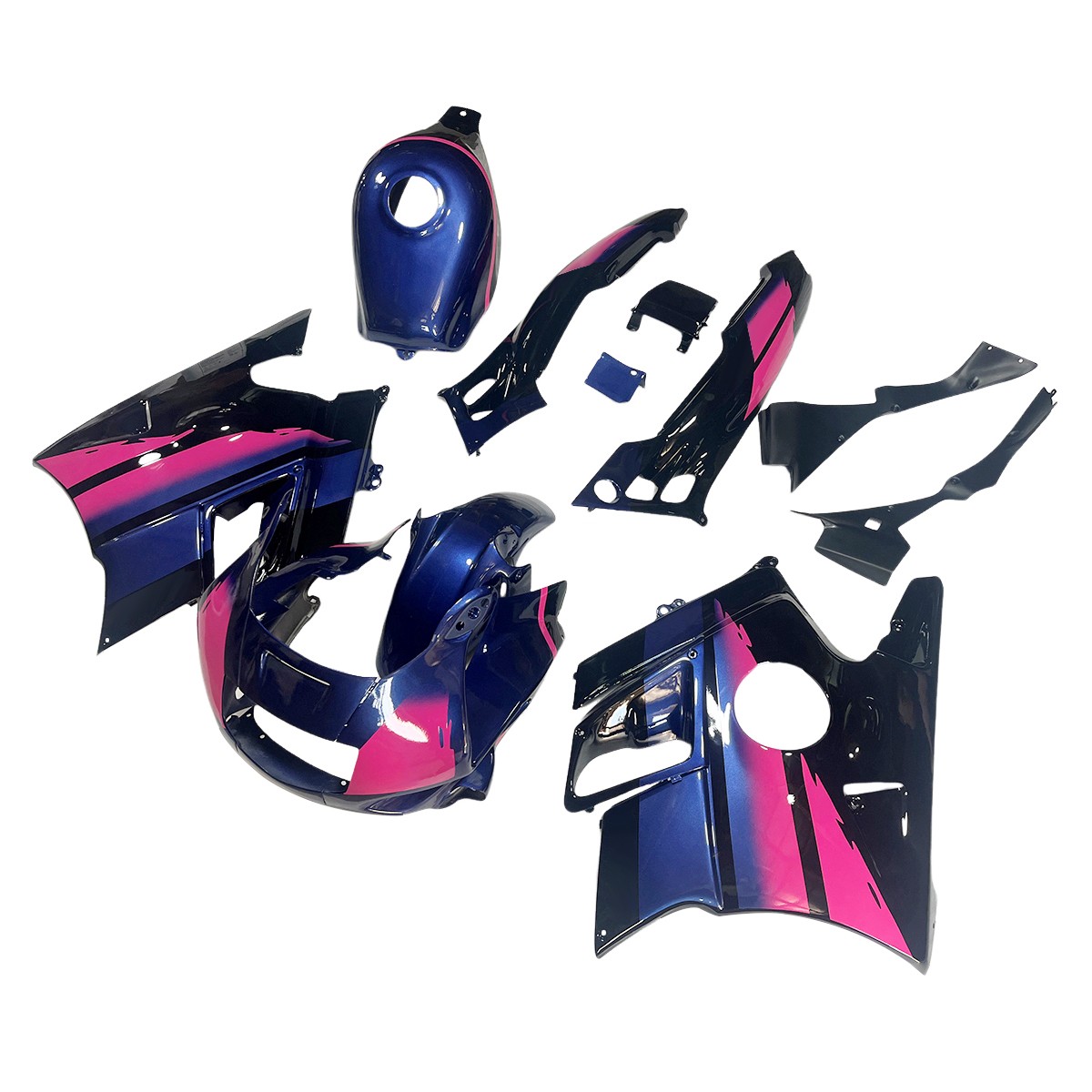 ABS Fairings For Honda CBR600F2 1991 1992 93 1994 Body Kits Purple Red Bodywork PRODUCTS SPECIFICATION FITMENT: For Honda CBR600F2 1991-1994 Motorcycle ITEM TYPE: Motorcycle Fairing Kit MOLDING: Compression(May Need Slight Modification When Installation) COLOR: As Pictures Shown PACKAGE LIST: ( All parts shown in the pictures are included) front nose + both sides fairings + front fender + tail fairings + black unpainted inner pieces SPECIAL GIFTS:Heat Shield & Windshield & Fairing Bolt Kit MATERIAL & PAINT JOB: Being made of strong, durable ABS plastic, 3-5 layers of clear coats applied after painting. All our fairings Pre-Drilled and all the hole can line up on your bike. If you want any other color scheme, we can paint fairings according to your pictures. We can also produce individual parts if you need. NOTE BEFORE BUYING 1. Please check the model carefully before biding. 2. If item got damaged during shipping(seldom happen), we'll provide replacement for free upon photo confirmation. SHIPPING We have Four warehouses in CA, TX, FL,NJ. The orders will be shipped from the nearest warehouse of your address AFTER SERVICE Fast shipping We have THREE warehouses in California, Florida, Texas, NewJersey. Orders will be shipped from nearest warehouse of your address. We do our best to ship your orders out as soon as possible. Items will be sent via USPS ,UPS or FedEx. Delivery Time is 5-8 working days. After Receiving When you receive item damaged, Defective, not as describe or wrong one(Seldom Happen) please email us pictures within 72 hours to resolve any problem better and fater: 1. All labels with clear words on the package; 2. The real goods you receive; 3. Different angles of the products and package to show the problem clearly. Return/Replacement In case the item is defective, please inform us within 30 days of receipt, we will arrange reship or refund. Buyers have to pay for the return cost and we will pay the cost for resend. Feedbacks If you are unsatisfied with our item or service, please contact us before leaving any feedback. We are committed to resolve all issues in a friendly and satisfactory manner. We always reply to messages within 2 business days (off-duty at weekend). If you do not get a response from us, then please check your junk or spam mailbox.