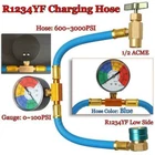 A/C R-1234yf Car Air Conditioning Refrigerant Recharge Hose w/Manifold Gauge Kit Product Description A/C R-1234yf Charging Hose with Manifold Gauge Coupler Kit for Car Air-conditioning Refrigerant Pressure Charging Hose Add our listing to Watchlist Or Add to Cart , you will get more discount *100% Brand New and High Quality *High Quality R1234YF refrigerant Charge Hose with Gauge with strong construction *For use in adding R1234YF refrigerant to vehicle air-conditioning with highly working performance *Completed with R1234YF AC refrigerant can opener tap dispensing valve *Easy and convenient to use, durable and practical *Come with gauge for easily viewing during use and getting a correct charge *Overall Length: Approx. 400mm (15.74inch) *Rated Working Pressure: 3000 PSI Burst / 600 PSI Max. Working Pressure *Dial Diameter: Approx. 2inch (50mm) Pressure Gauge *Can Opener Thread: Female 1/2" ACME LH *Quick Coupler: Low Side R1234yf 14mm Female Quick Coupler *Color: As Pictures Show *Quantity: 1Pc Package Contents: 1 x R1234yf Refrigerant Charging Hose Kit Note:There will be a color difference in blue, subject to the actual received color Warm Tips: *We provide clear pictures, measurements where possible. Please check as much as possible to make sure the item is the one that you need. *Please allow 0-2mm error due to manual measurement and make sure you do not mind before ordering. *Please understand that colors may exist chromatic aberration as the different placement of pictures eBay Cross Border Trade powered by ChannelEffect