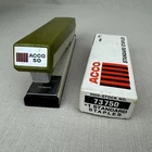 Vintage ACCO 50 stapler with signs of age and use/ dirty from storage Includes a half box of ACCO staples (approx 2500 staples remain) and a (not ACCO) staple remover Troll and other background props not included