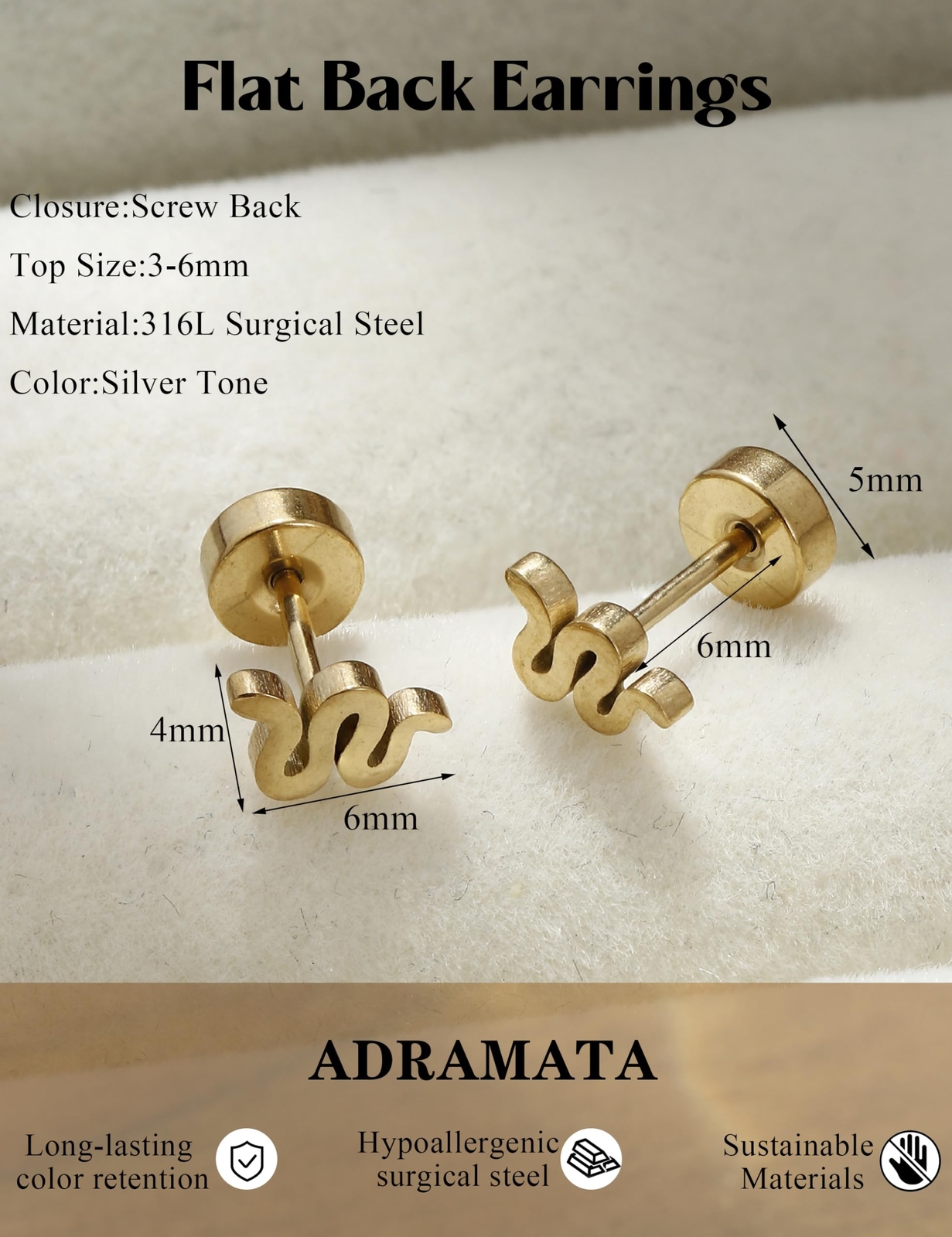 ADRAMATA Surgical Steel Earrings - Flat Back Earrings Hypoallergenic - 14K Gold Plated Stud Earrings for Women Men - Cartilage Earring | Helix Tragus Piercing Jewelry | Gold Earrings for Women Trendy Product Details Style: Round Screw Back-14K Gold Brand: ADRAMATA MPN: Does not apply UPC: Does not apply EAN: Does not apply Package Dimensions : 2.76 x 2.76 x 0.39 inches; 1.06 ounces Department : Unisex Adult Date First Available : August 17, 2024 Brand, Seller, or Collection Name: ADRAMATA Metal: Stainless Steel Material: Surgical Steel Earrings Gem Type: Cubic Zirconia Back finding: Push Back, Screw Back