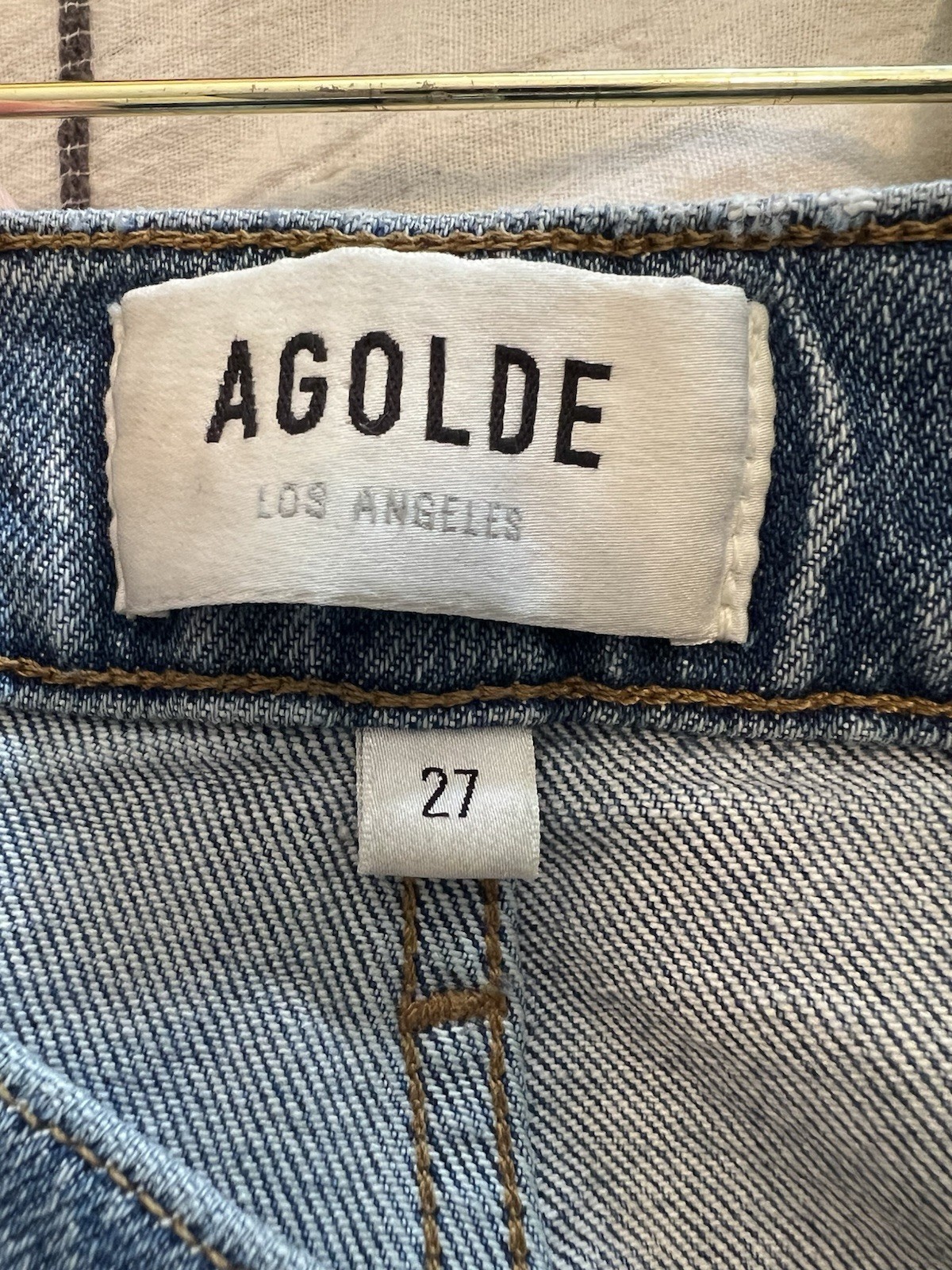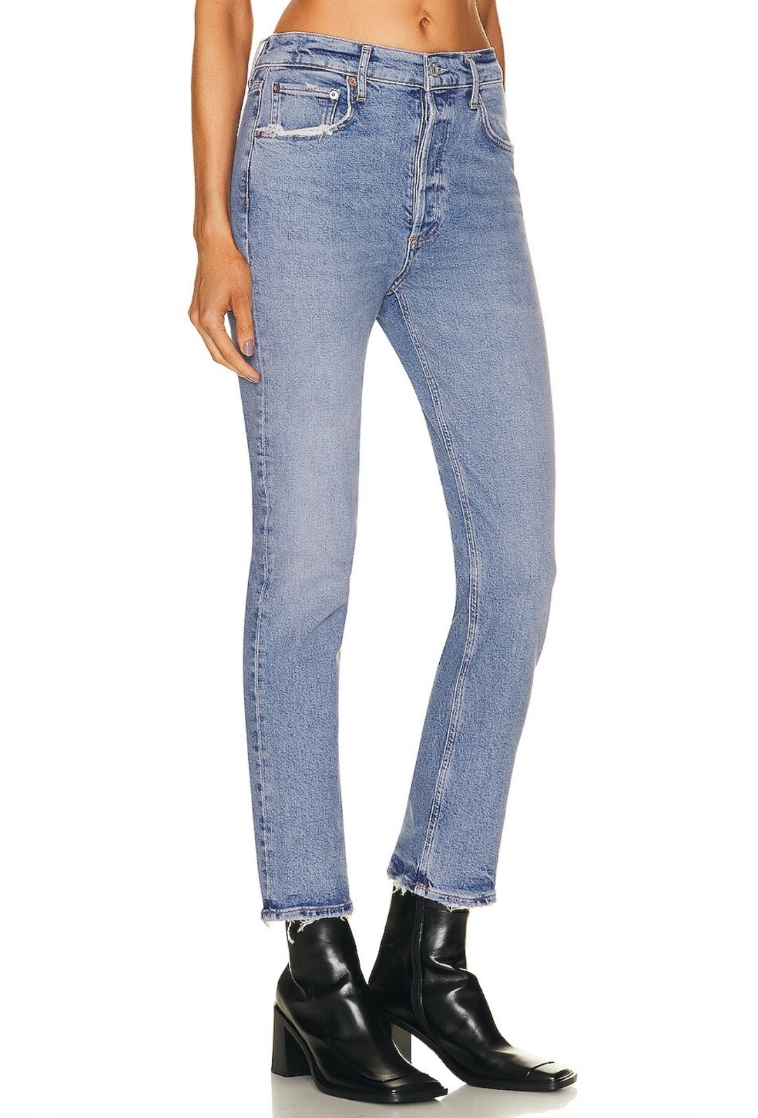 These are the authentic AGOLDE Riley Long Crop High Rise Straight jeans in size 27. They feature a classic button fly, a flattering high-rise fit, and a slightly cropped, straight leg with a raw, distressed hem. Made with 99% Organic Cotton and 1% Elastane for a comfortable fit that holds its shape. These jeans are a wardrobe essential, perfect for a casual and effortlessly cool look. Key Details • Brand: AGOLDE • Style Name: Riley Long Crop (Style: A9090-1370) • Size: 27 • Color/Wash: Light to medium blue wash • Fit: High Rise, Straight Leg, Cropped • Material: 99% Organic Cotton, 1% Elastane Condition Excellent pre-owned condition. Minimal signs of wear. No visible stains, holes, or major flaws. The intentional raw/distressed hem and pocket distressing are part of the original design. Measurements (approximate, lay flat) • Waist: 14.5” • Rise: 11” • Inseam: 25” • Length: 35” #AGOLDE #OrganicCotton #HighRiseJeans #StraightLeg #SustainableFashion Item: 300