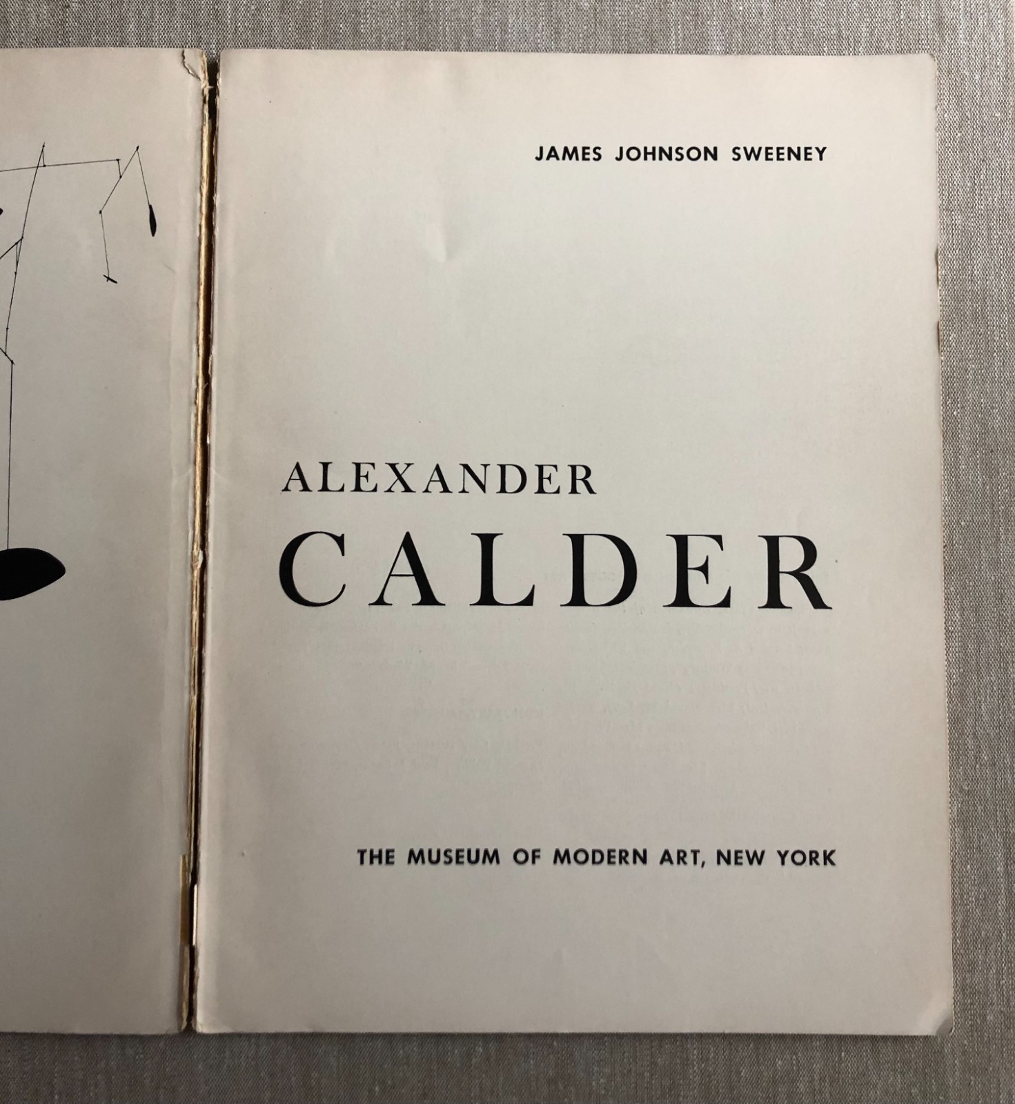 CATALOGUE FOR THE 1943 SHOW OF CALDER’S WORK AT MoMA IN 1943 TEXT BY JAMES JOHNSON SWEENEY CONDITION: COVERS WORN TO EXTREMITIES WITH SOME CHIPPING AND RUBBING TO SPINE, OTHERWISE VERY GOOD ARTIST: ALEXANDER CALDER FORMAT: PAPERBACK EDITION: FIRST EDITION YEAR PUBLISHED: 1943 PUBLISHER: MUSEUM OF MODERN ART, NEW YORK PAGES: 64 ILLUSTRATIONS: PROFUSELY ILLUSTRATED IN BLACK AND WHITE