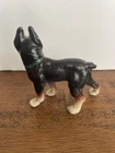 This antique Hubbley cast iron Boston terrier miniature paperweight figurine is a charming addition to any collection. Measuring at 3 inches tall, it is the perfect size to display on a bookshelf or mantel. The figurine is beautifully crafted with intricate details and would make a great gift for any dog lover. Made in the United States, this figurine is a unique piece that is sure to impress. It is not handmade and is classified as a collectible. The Boston terrier is a beloved dog breed and this figurine is a true testament to their beauty and grace. Add this exquisite piece to your collection today.