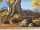 An antique painting on canvas by Irene Thompson depicting a nature scene with mountains and an oak tree. The painting is large in size with dimensions of 29 inches in height and 25 inches in width. It is framed and handmade using oil painting as the production technique. The style is realism, highlighting the theme of nature. Produced in the time period of 1925-1949 in the United States. The canvas itself is 24 inches high by 20 inches wide. Condition as pictured. Condition of the canvas, along with the use of nails and not staples and also the period frame dated to pre-1950. If you have more information on the artist, Irene Thompson, please let me know. 😊 Thank you for looking and God bless! 🙏🏼 ❤️ 😀
