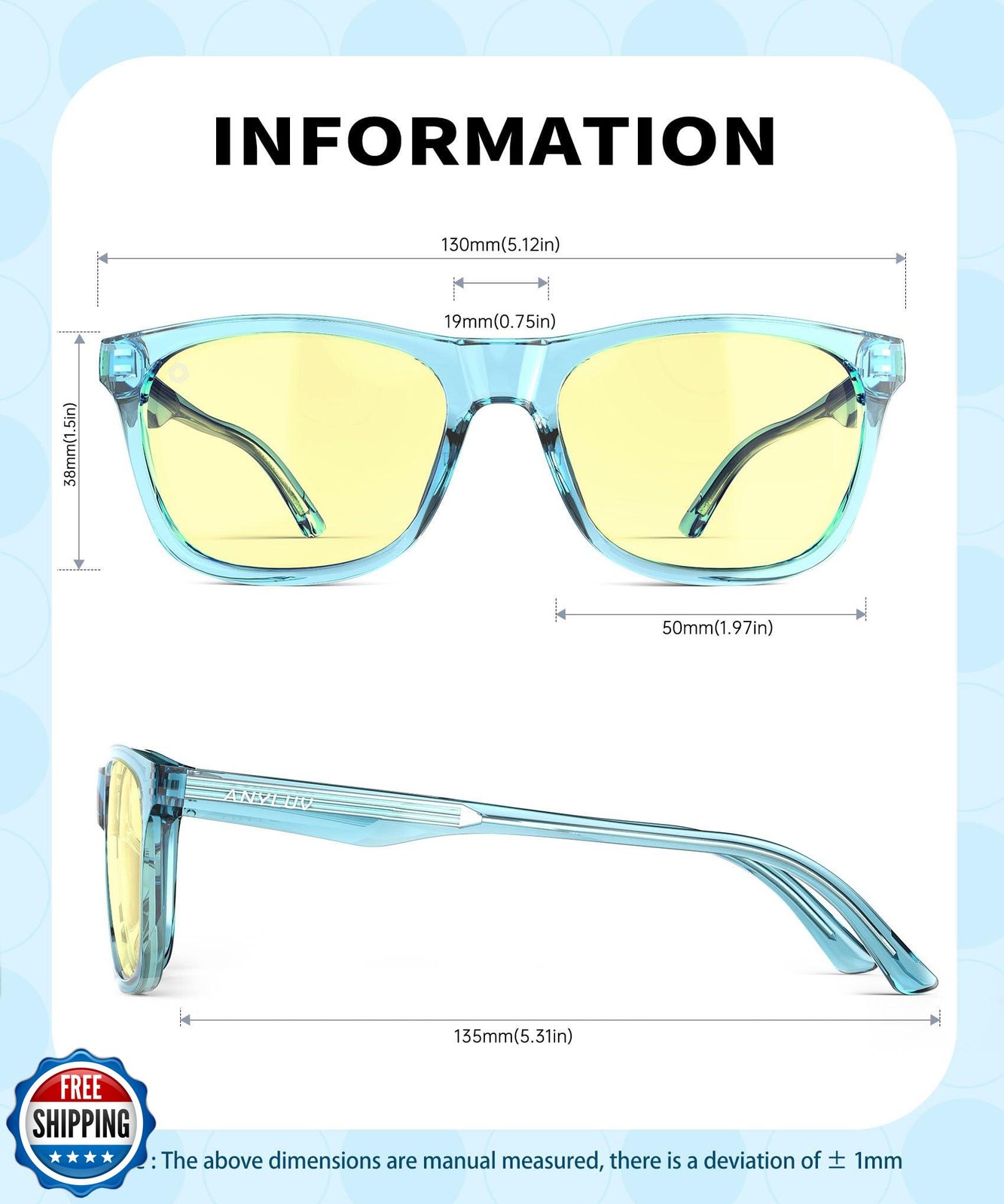 ANYLUV Blue Light Glasses for Kids, Youth Protection Glasses for Gaming, Teen Blue Light Glasses Reduce Eye Strain Features 【Ultimate Eye Protection】: ANYLUV blue light glasses for kids effectively filter harmful blue light from electronic devices, reducing eye strain and fatigue during screen time. 【Versatile for Outdoor Use】: These kid blue light glasses are not only perfect for screens but also provide UV protection for outdoor activities, ensuring your child's eyes are safe in any environment. 【Comfortable & Lightweight Design】: Made with soft, lightweight materials, our blue light blocking glasses are designed for all-day comfort, making them ideal for long hours of homework or fun activities. 【Fun & Trendy Styles】: ANYLUV offers a variety of stylish designs for kids, ensuring they love wearing their blue light glasses while looking cool during screen time or outdoor adventures. 【Durable & Kid-Friendly】: Built to withstand the active lifestyle of children, these blue light glasses for kids are made from high-quality materials, providing both durability and reliable eye protection. Shipping Free & Fast Shipping: We offer free shipping to most of the USA with a normal delivery time of 3-7 days. However, due to the current situation, additional delivery time (up to 3 weeks) may be required for some items. Alternative Carriers: We may use alternative carriers (e.g., USPS, FedEx, UPS) to ensure your package arrives safely and on time. Due to the use of multiple carriers, we are unable to provide a tracking number automatically. Handling Time: Orders are processed and shipped within 1-2 business days of receiving cleared payment. Shipping Restrictions: Shipping to Alaska, Hawaii, Puerto Rico, Guam, and other US territories may incur shipping charges or delivery restrictions. Please contact us before ordering, or your order can be refunded/cancelled. State Restrictions: Certain items may not be shipped to California due to state regulations. Contact for Tracking Updates: If you require tracking updates or have any concerns about the delivery of your order, please feel free to contact us, and we will be happy to assist you. Return Policy 30-Day Hassle-Free Returns: If you are not completely satisfied with your purchase, you can return the item for free within 30 days of receiving it for a full refund or exchange. Easy Return Process: Contact us, and we will provide you with a prepaid return shipping label and detailed instructions. No Restocking Fee: There are no restocking fees for returns. However, the buyer is responsible for return shipping costs if the return is not due to a seller"s error. Refund Processing: Refunds will be processed within 1 business day of receiving the returned item in its original condition. Feedback Your feedback is extremely important to us. We strive to provide the best products and customer service possible. If you are satisfied with your purchase, please take a moment to leave us a positive review. If you have any concerns or issues with your order, please contact us before leaving negative feedback. We are committed to resolving any problems and ensuring your satisfaction. Contact Us If you have any questions or concerns, please feel free to reach out to our customer support team. You can contact us through the eBay messaging system. We are available Monday to Friday, 9:00 am to 5:00 pm EST, and we will do our best to respond to your inquiry within 24 hours. Thank you for supporting our small family business!
