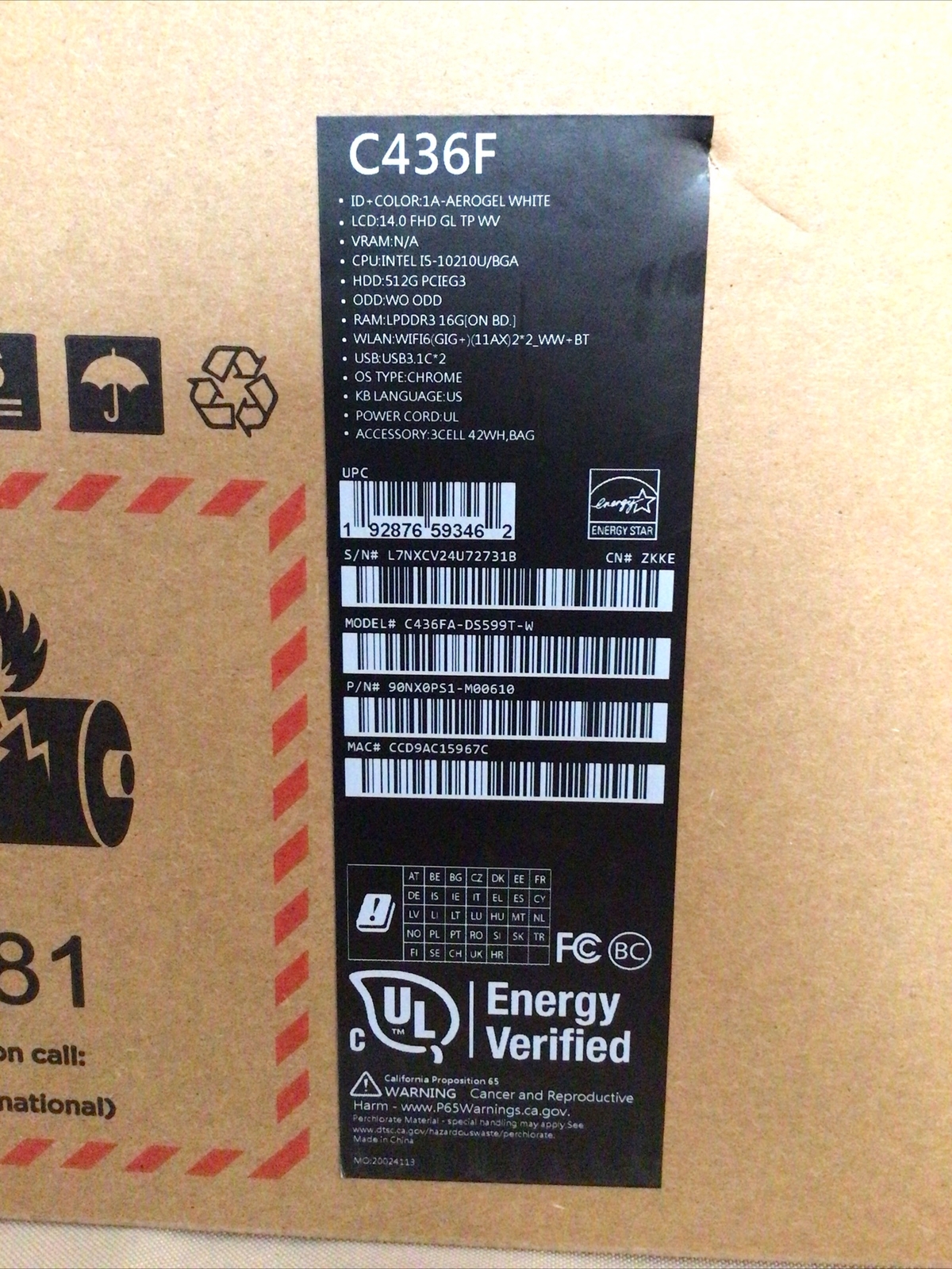 ASUS CHROMEBOOK FLIP C436F 16 GB RAM 512 GB HD I5 10210U. New Sealed Box.
