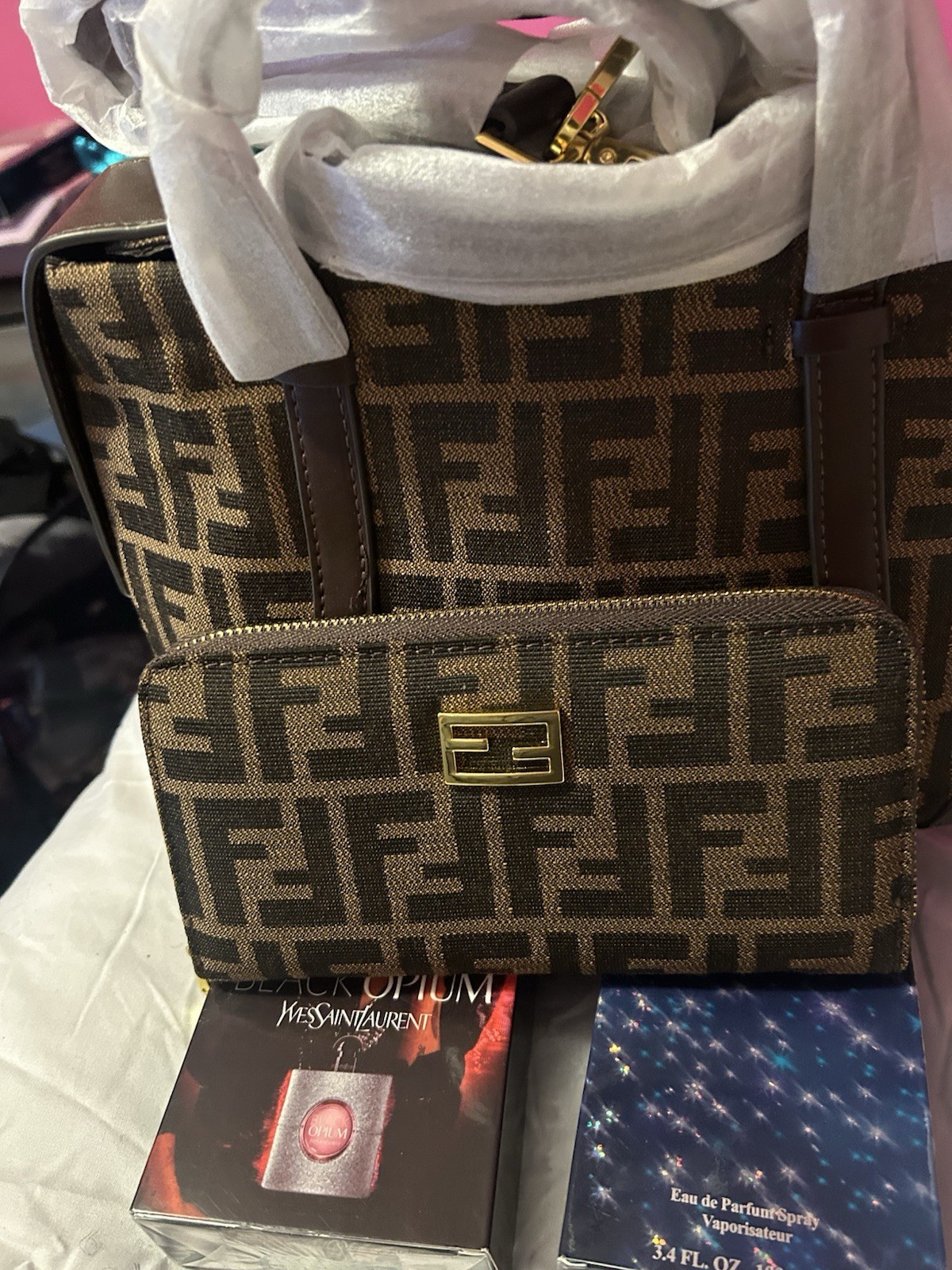 The AUTH FENDI PassaPala Zucca M Cuoio Moro Fendi Baguette Zucca Hand Bag Purse is a small rectangular shoulder bag made by the luxury brand Fendi. It features a brown exterior with a classic Fendi Zucca pattern, silver hardware, and a brown leather top handle. The bag includes inner pockets, an authentication card, and an adjustable strap, making it suitable for various occasions such as travel, weddings, parties, casual outings, and business events. Made in Italy, this designer handbag exudes luxury and elegance, perfect for the fashion-forward woman looking for a timeless accessory.