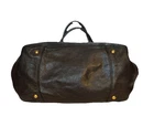 $ 13.2CELINE vintage Macadam Mini Boston Bag handbag Triomphe Logo Brown Leather/PVC