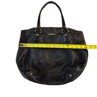 This elegant vintage Prada 2Way bag is crafted with black deerskin leather and gold-tone hardware. The thoughtful design and large size allow it to be your go-to bag for everyday use. Whether running errands, off to work, a get together or travel, this bag/tote will keep you organized while adding a touch of sophistication to your look. KEY Features - luxurious, soft deerskin leather & large rounded rectangular shape - side snaps allowing expansion - two rolled handles with 8” drop - approximately 14” across, 6” deep, and 10.5” high - open top with snap closure - protective feed on the bottom - roomy interior lined in Prada logo jacquard fabric - detachable, adjustable shoulder strap for versatile carrying options, 30”-42” - luggage/ID holder Condition This is a pre-loved bag in quite GOOD vintage condition. There are minor signs of prior use highlighted here and in the photos: EXTERIOR Condition - Minor scratches and normal wear - Bottom corners show some wear - Bag is slightly out of shape between the handles from use - Handles show some wear and can be bent slightly inwards - Snaps and strap buckle operate smoothly and securely INTERIOR Condition - Like new fabric - Stitching is tight and even, no loose threads OVERALL Assessment GOOD condition Please see photos for more details. New (non-Prada) dust bag included.