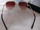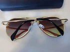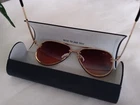 Look stylish with these classic Aviator sunglasses. The gold-tone metal frame adds a touch of elegance to your look. These unisex sunglasses are brand new, never worn, stylish case is included in the price. The sunglasses are perfect for those who want to protect their eyes from the sun while maintaining their fashion sense. Made in Panama, these sunglasses are sure to impress. Get yours now before summer's long sunny days and add a touch of sophistication to your wardrobe.